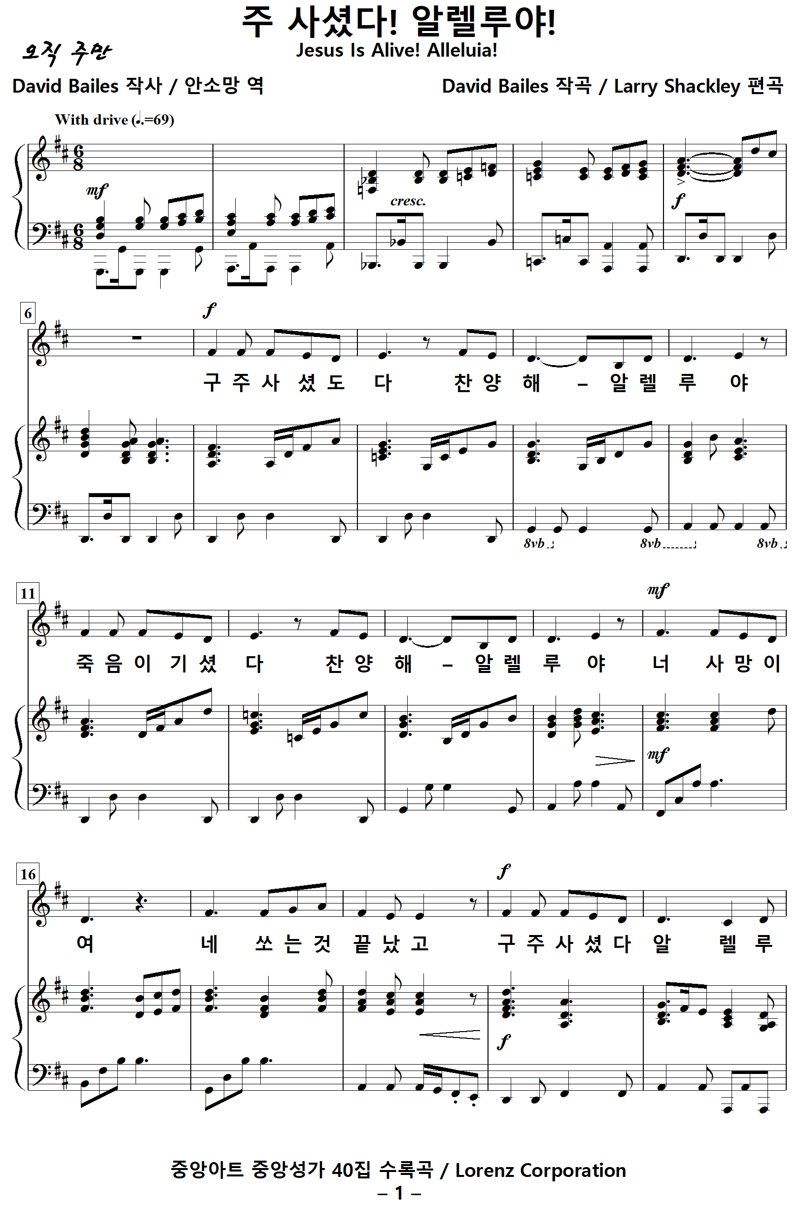 [성가악보] 주사셨다알렐루야 / 구주사셨도다찬양해 [David Bailes 작사, David Bailes 작곡, Larry Shackley 편곡, 안소망 역]