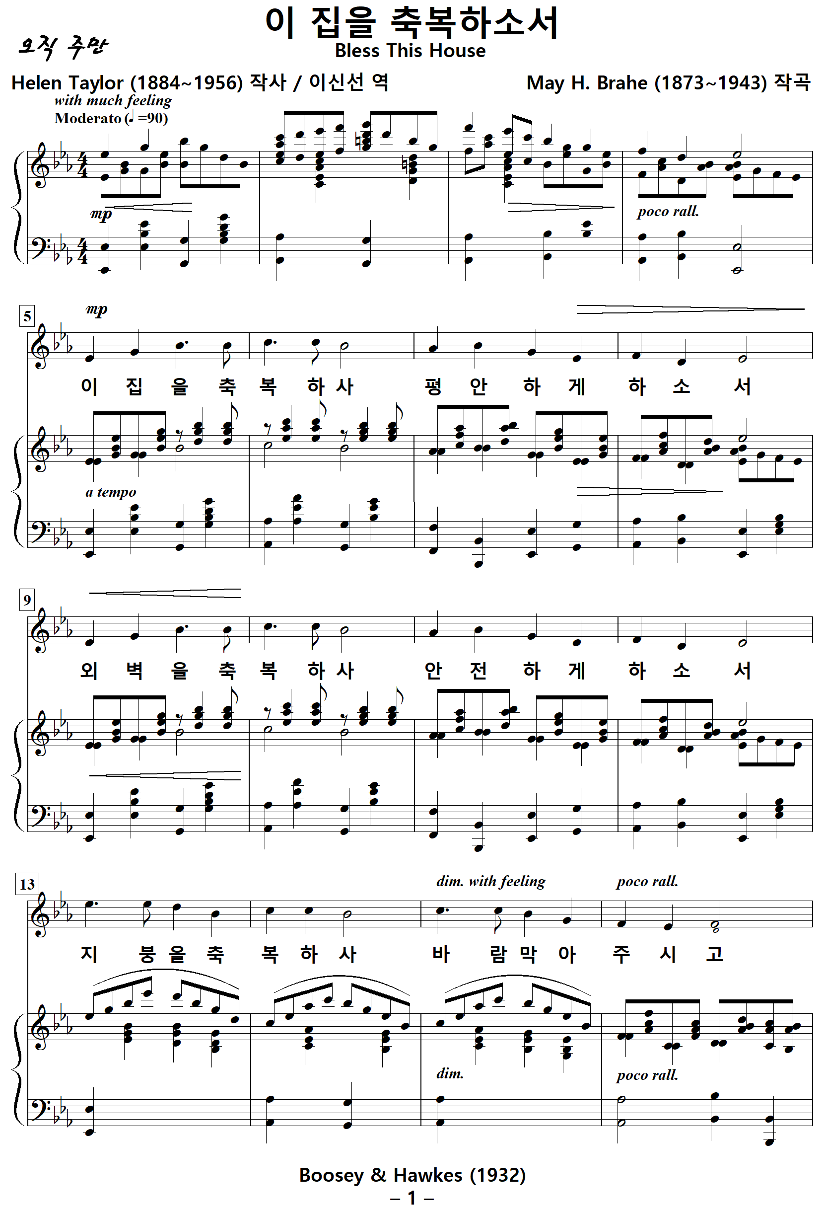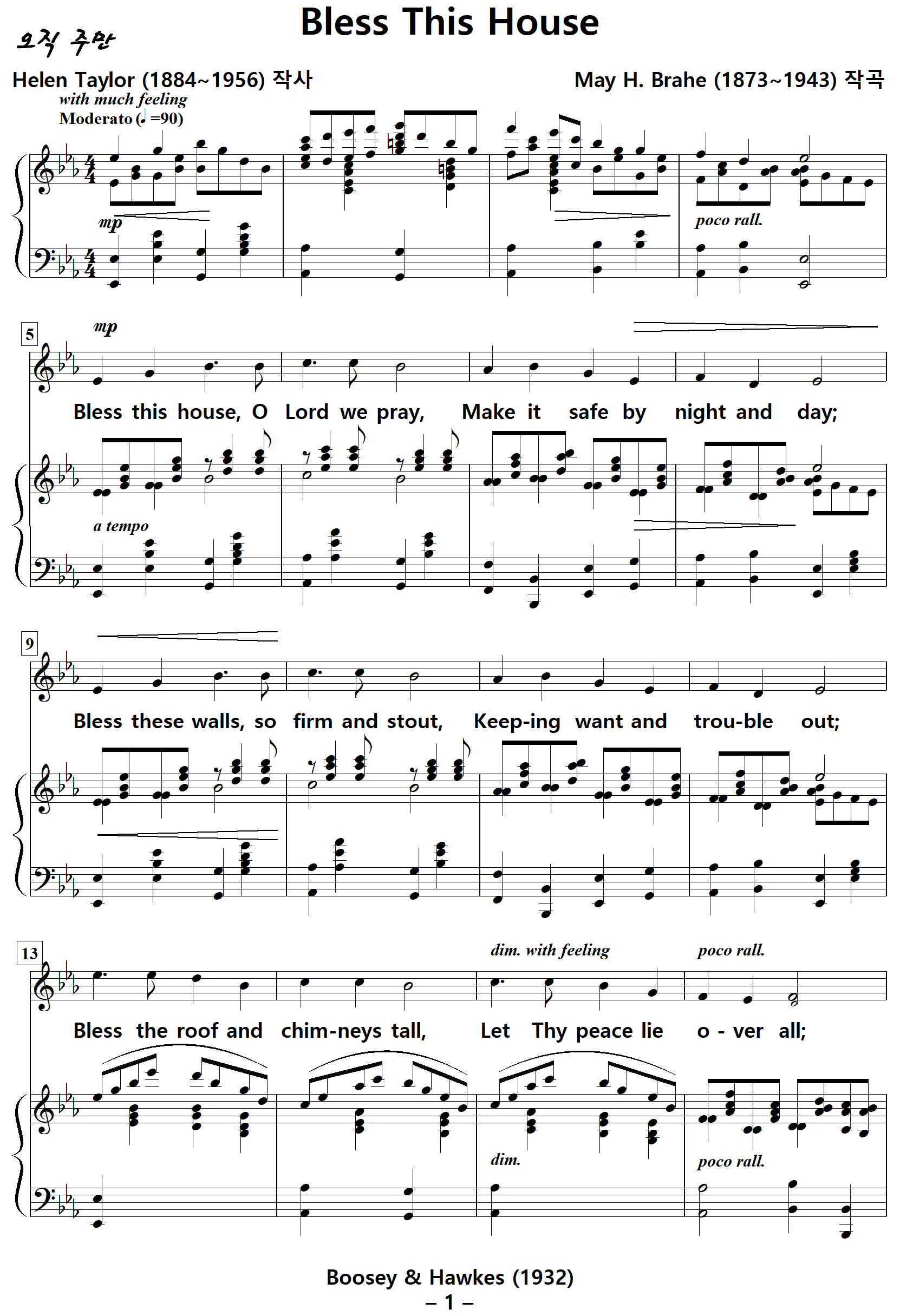 Bless This House / 이 집을 축복하소서 (May H. Brahe, Solo) 한글 NWC / PDF 악보 다운받기