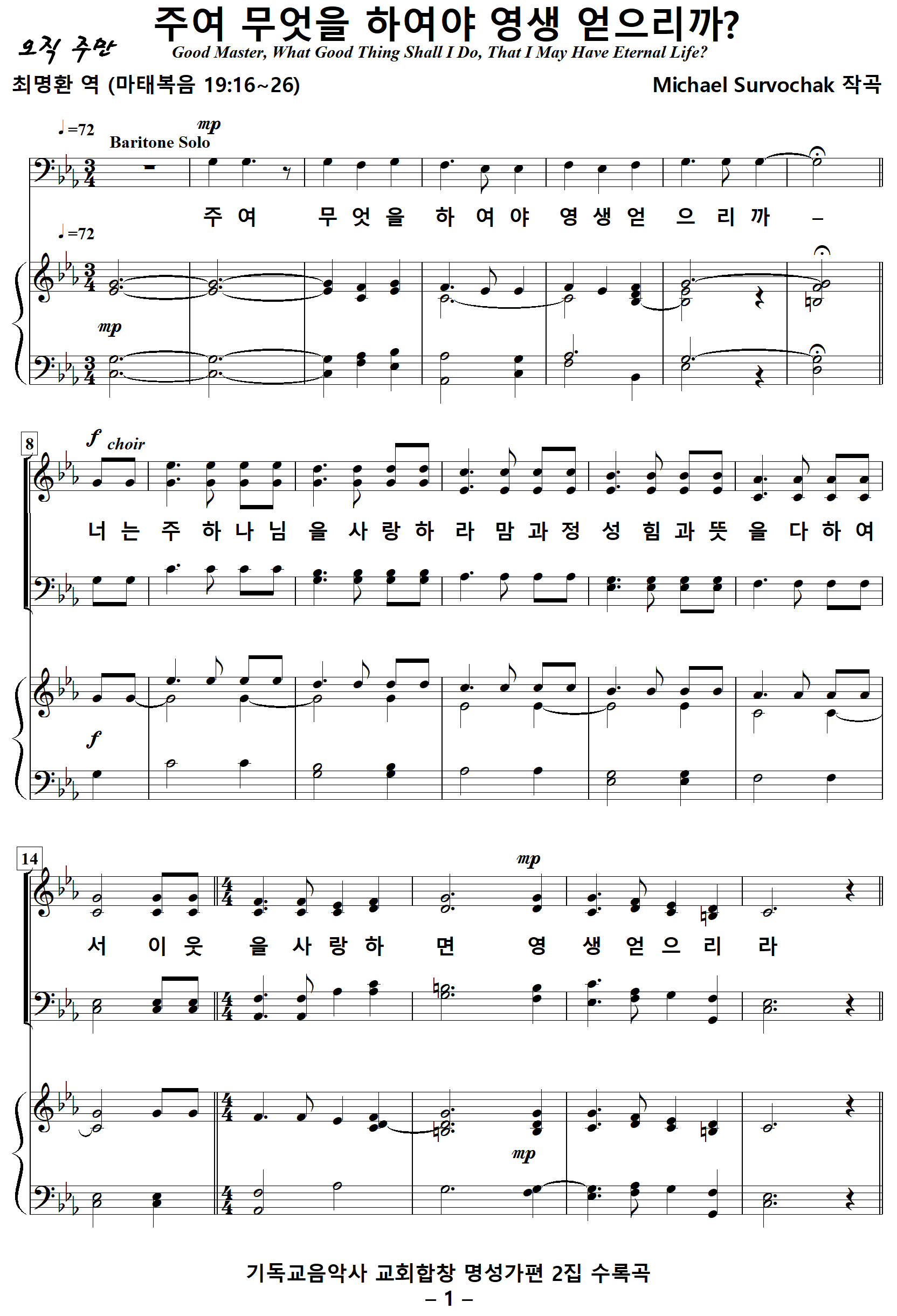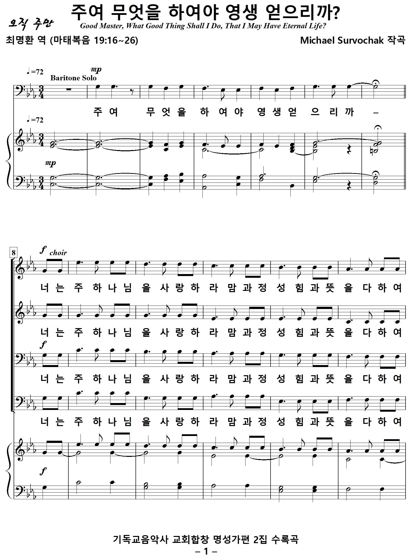 주여 무엇을 하여야 영생 얻으리까 (Michael Survochak, 명성가) NWC / PDF 4부 성가악보 다운받기