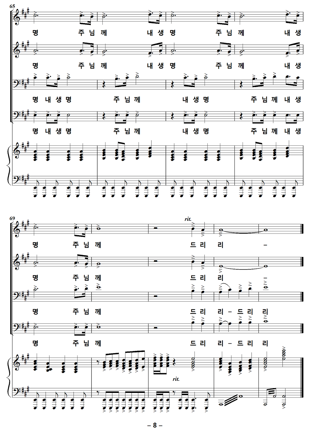 내 생명 주님께 드리리 (드리리)