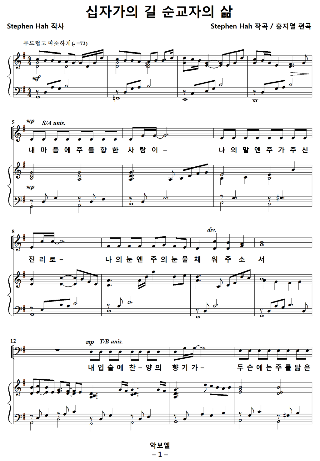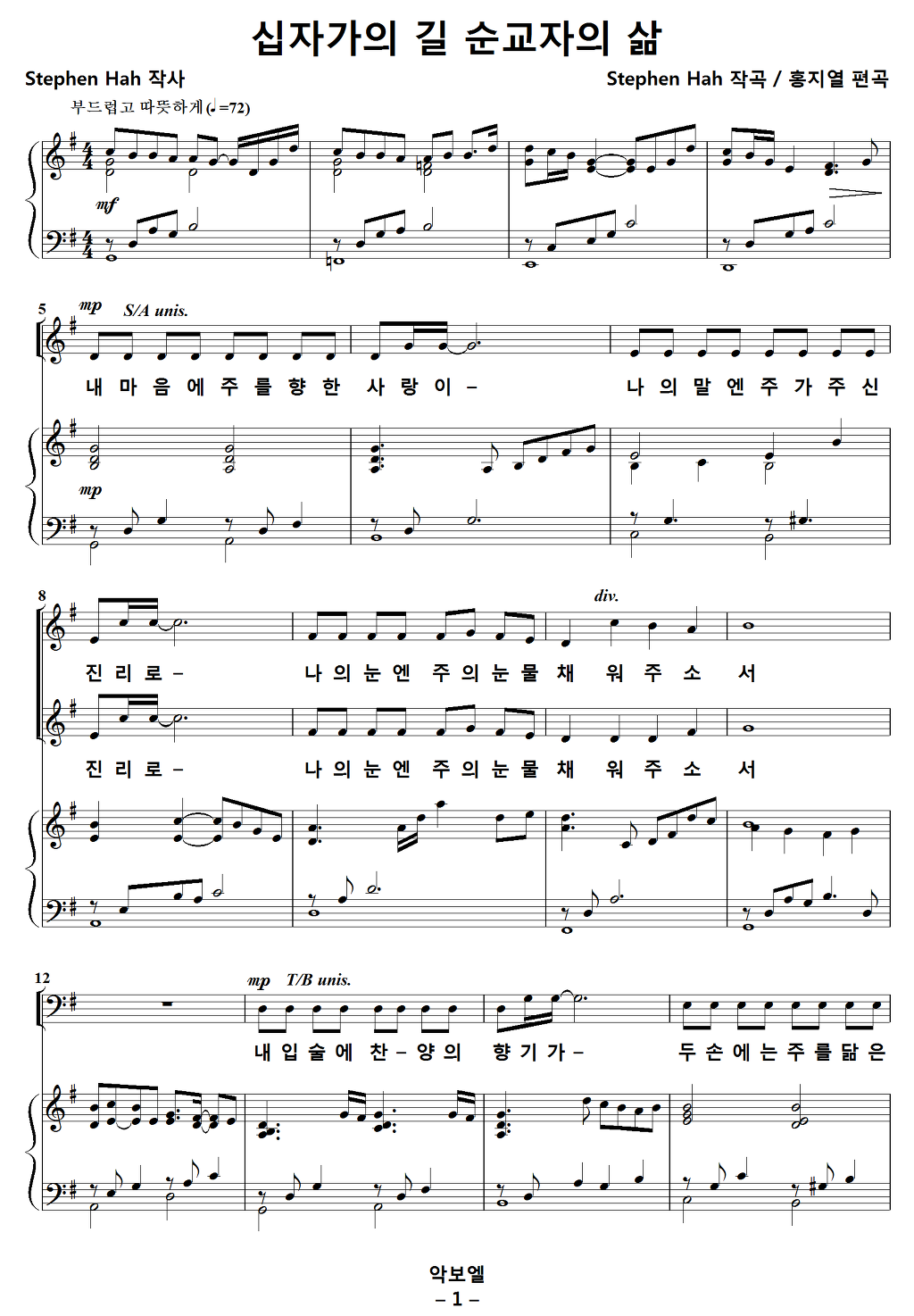 [찬양가사] 십자가의길순교자의삶 / 내마음에주를향한사랑이 [Stephen Hah 작사, Stephen Hah 작곡, 홍지열 편곡]