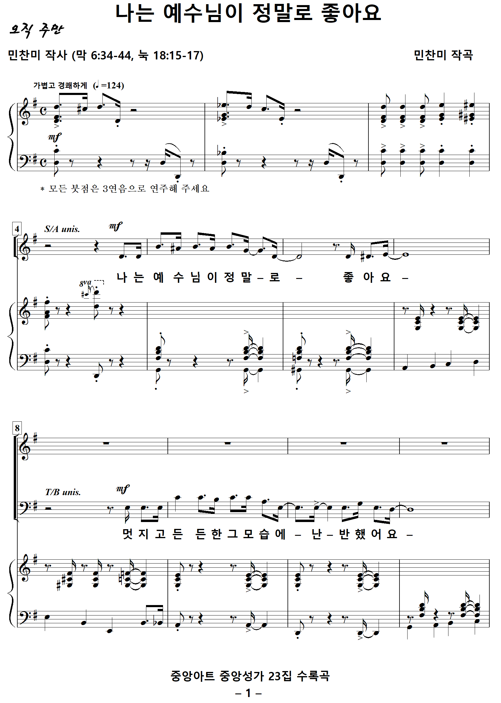 [찬양가사] 나는예수님이정말로좋아요 [민찬미 작사, 민찬미 작곡]