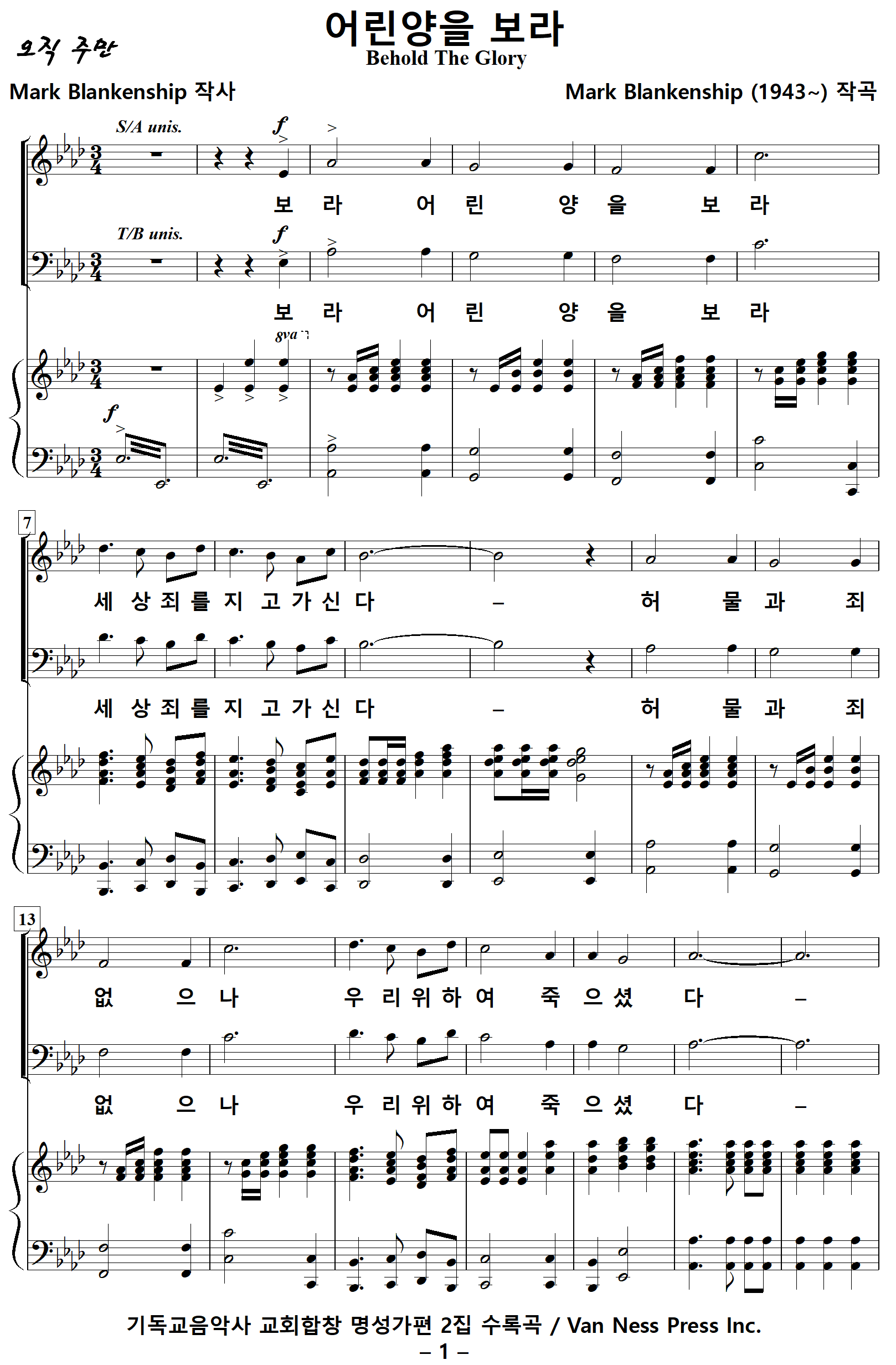 출처 : 기독교음악사 교회합창 명성가편 2집 / Van Ness Press Inc.