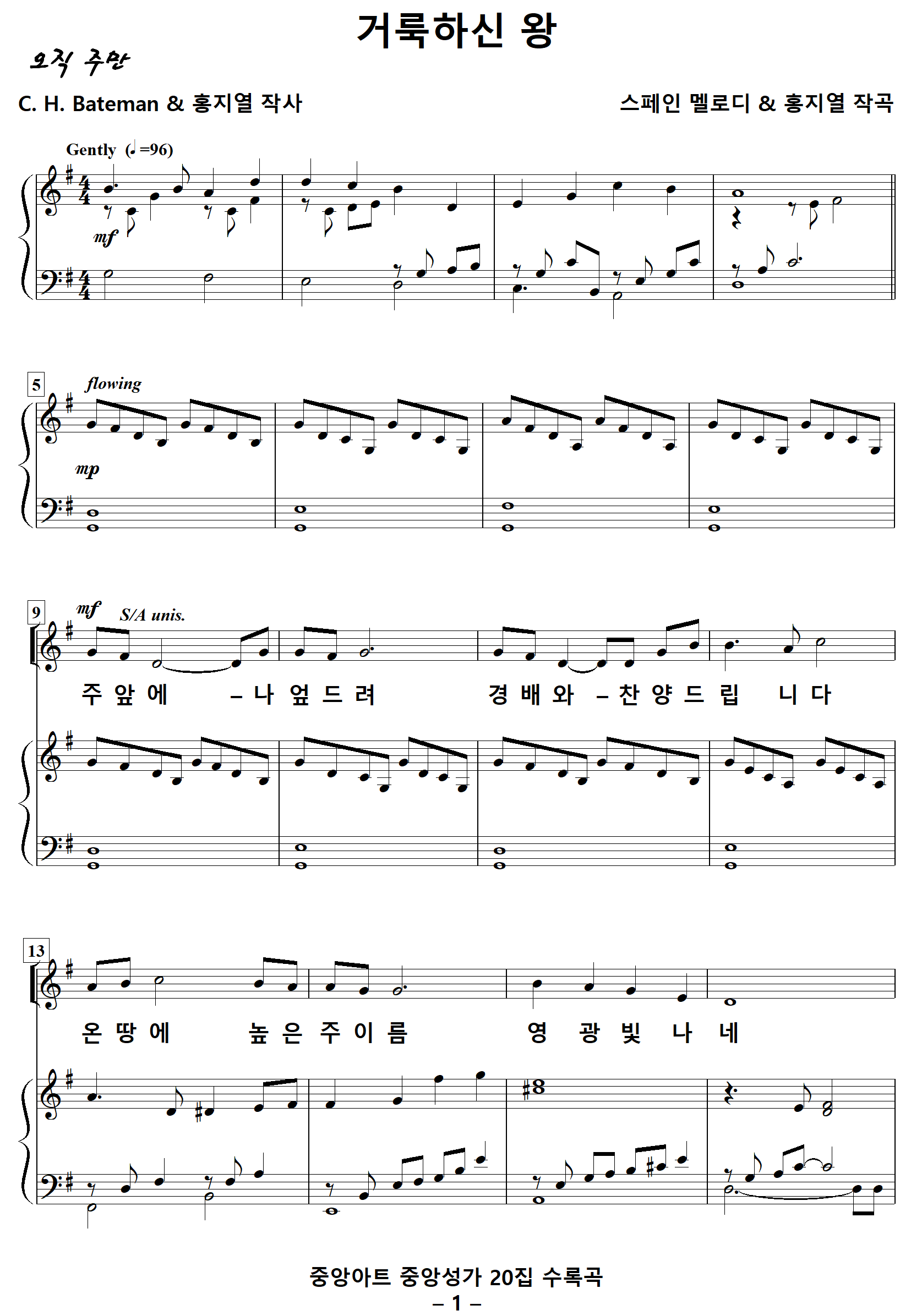 [찬양가사] 거룩하신왕 / 주앞에나엎드려 [C. H. Bateman & 홍지열 작사, 스페인 멜로디 & 홍지열 작곡]