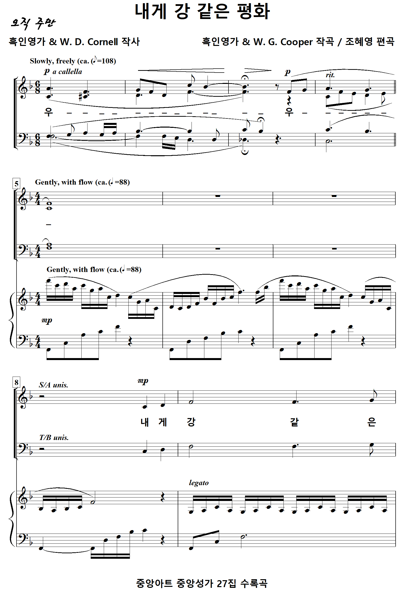 [찬양가사] 내게강같은평화 / 우 내게강같은평화 [흑인영가 & W. D. Cornell 작사, 흑인영가 & W. G. Cooper 작곡, 조혜영 편곡]