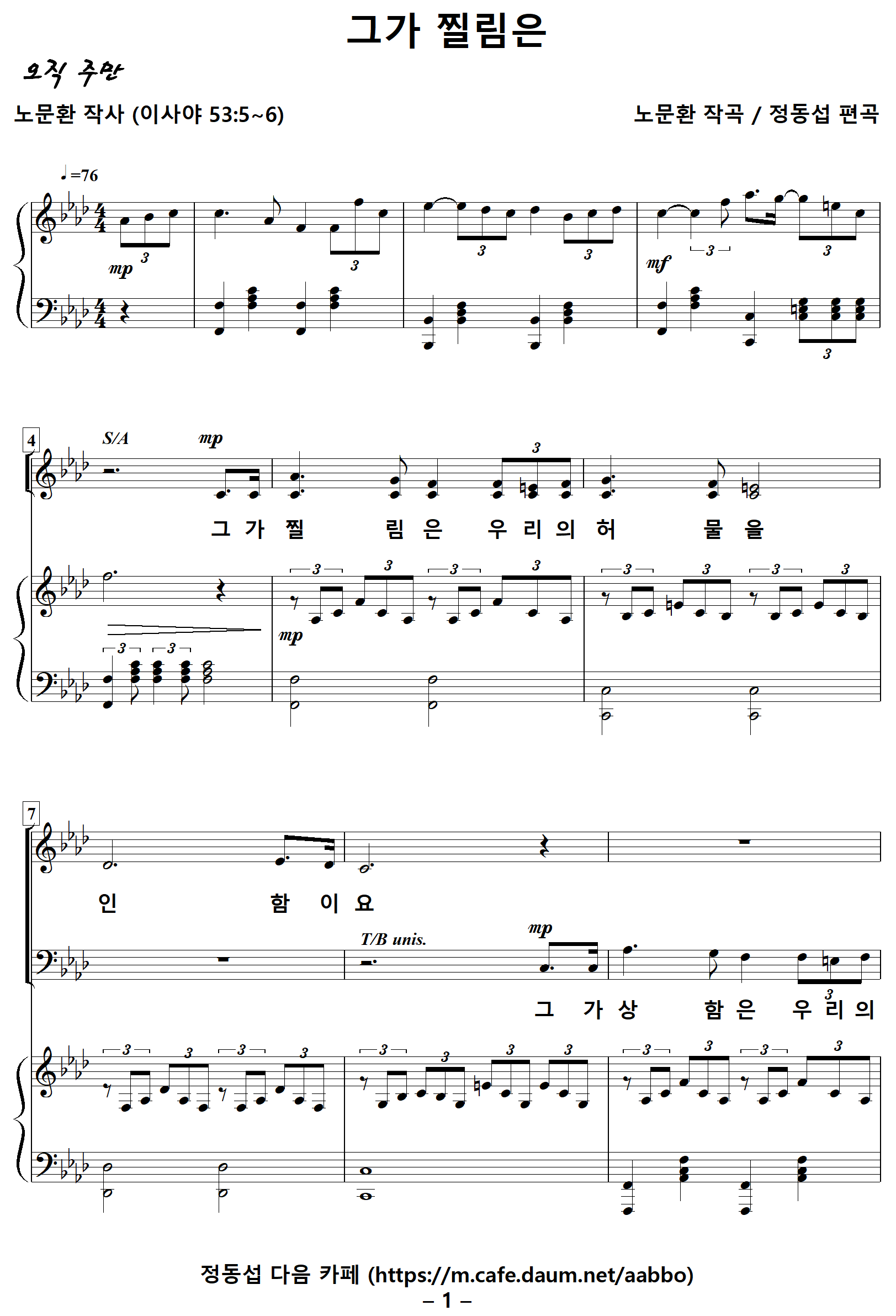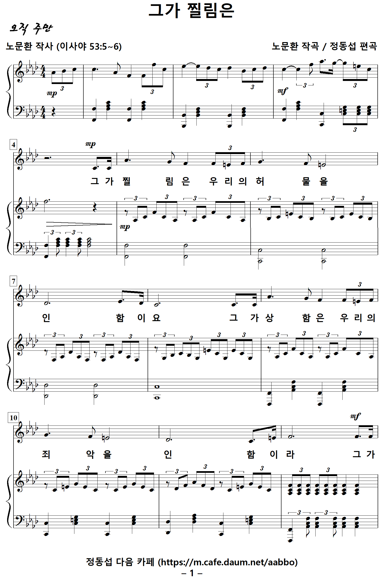 [성가악보] 그가찔림은 / 그가찔림은우리의허물을인함이요