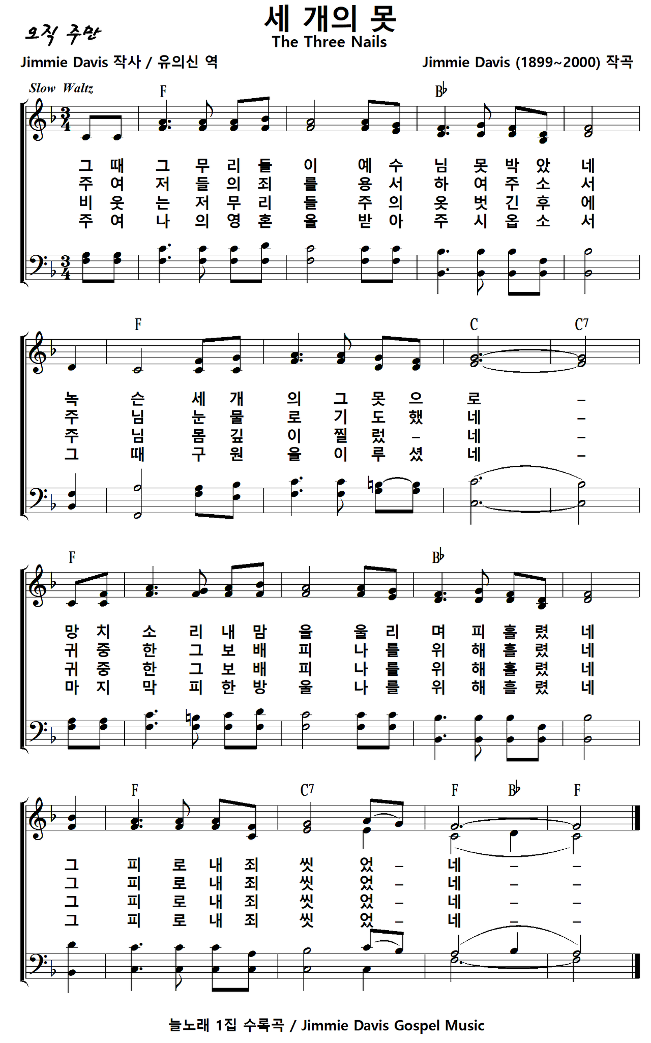 세 개의 못 / 그때 그 무리들이 (Jimmie Davis, 혼성4부) NWC / PDF 4부악보 다운받기