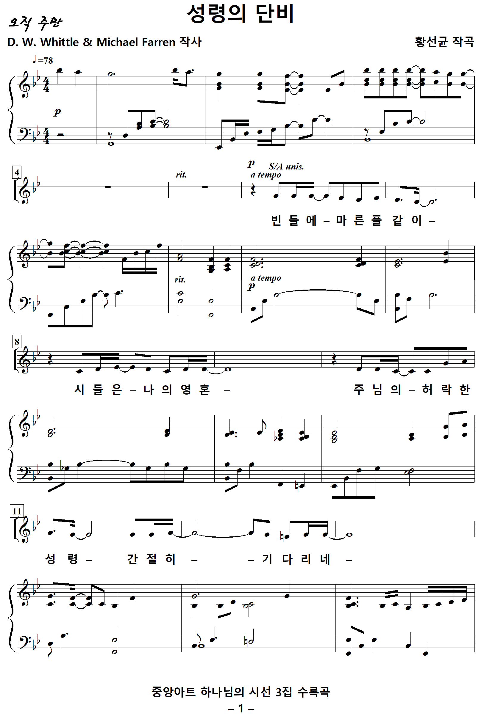 [찬양가사] 성령의단비 / 빈들에마른풀같이 [D. W. Whittle & Michael Farren 작사, 황선균 & Michael Farren 작곡, 황선균 편곡]