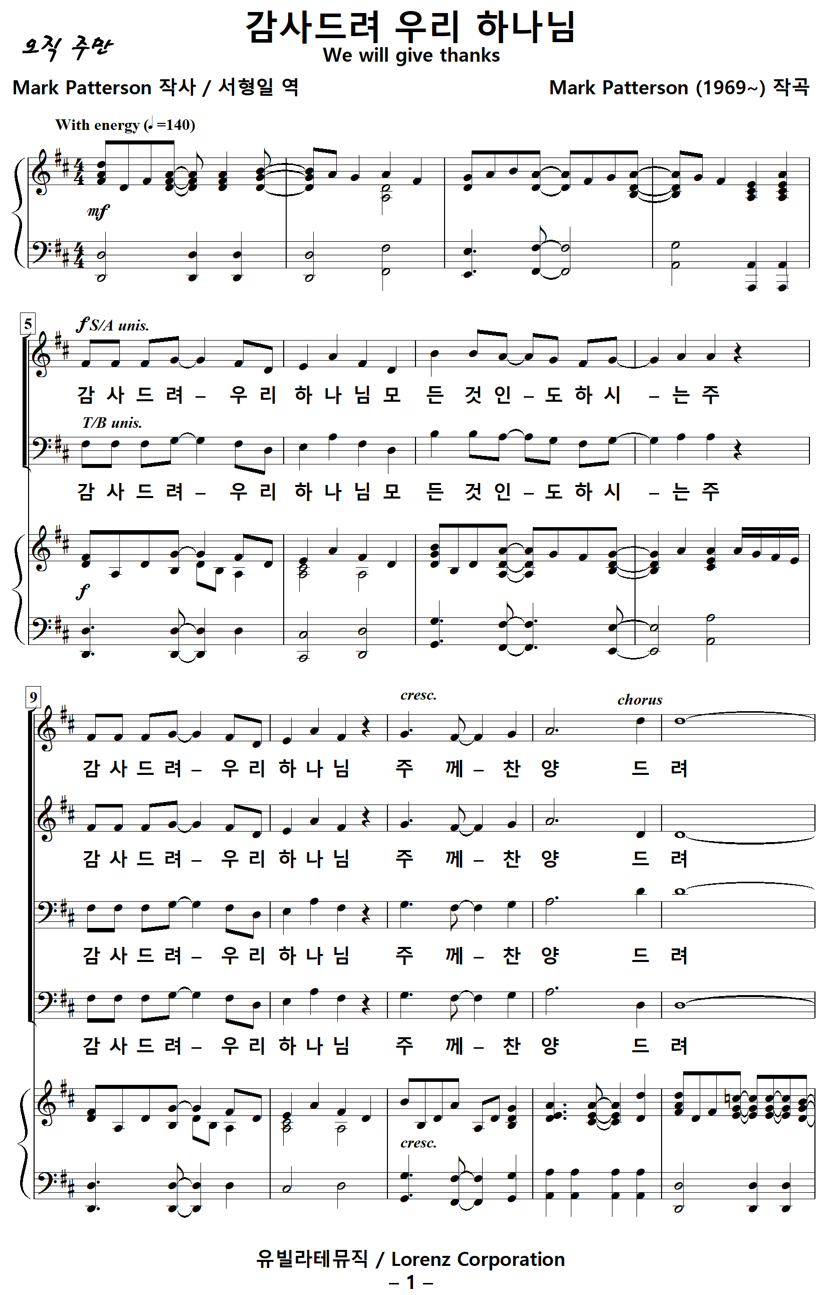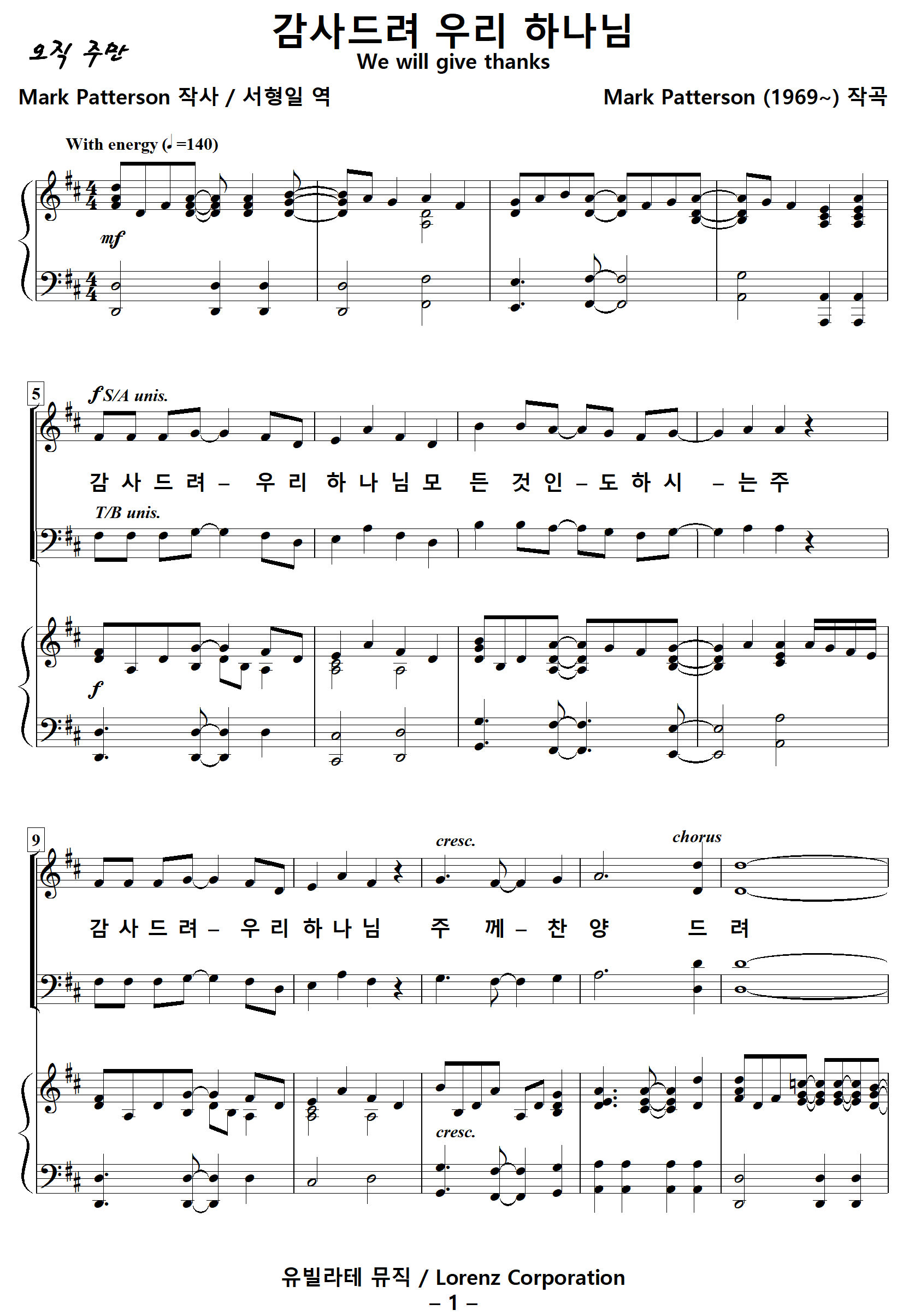 [찬양가사] 감사드려우리하나님 [Mark Patterson 작사, Mark Patterson 작곡, 서형일 역]