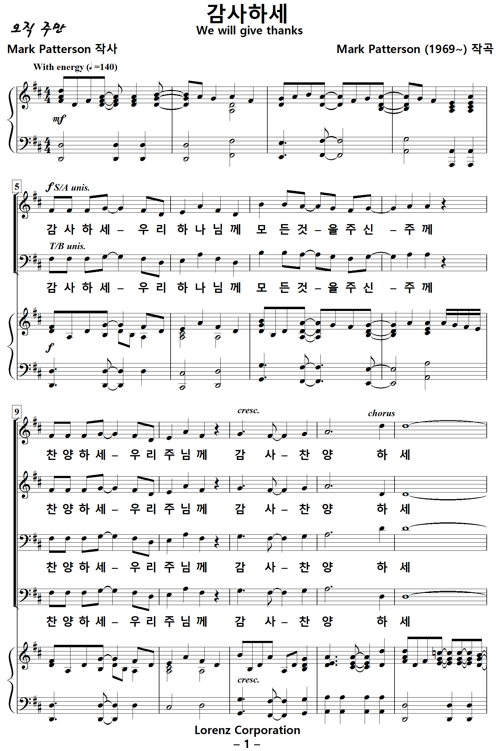 [찬양가사] 감사하세 / 감사하세우리하나님께 [Mark Patterson 작사, Mark Patterson 작곡]