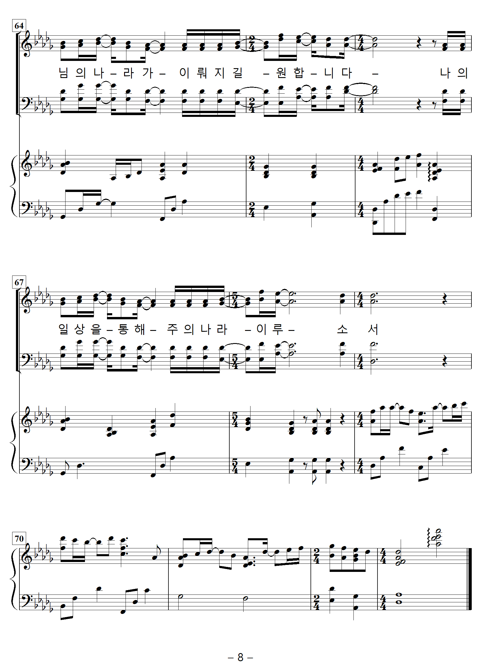 | 저작권자 손경민 목사님은 악보를 무료로 배포하고 계십니다. 고마운 마음에 후원하실 분은 아래 계좌로 후원해 주시기 바랍니다. 후원계좌 하나은행 659-910515-17207 손경민 |