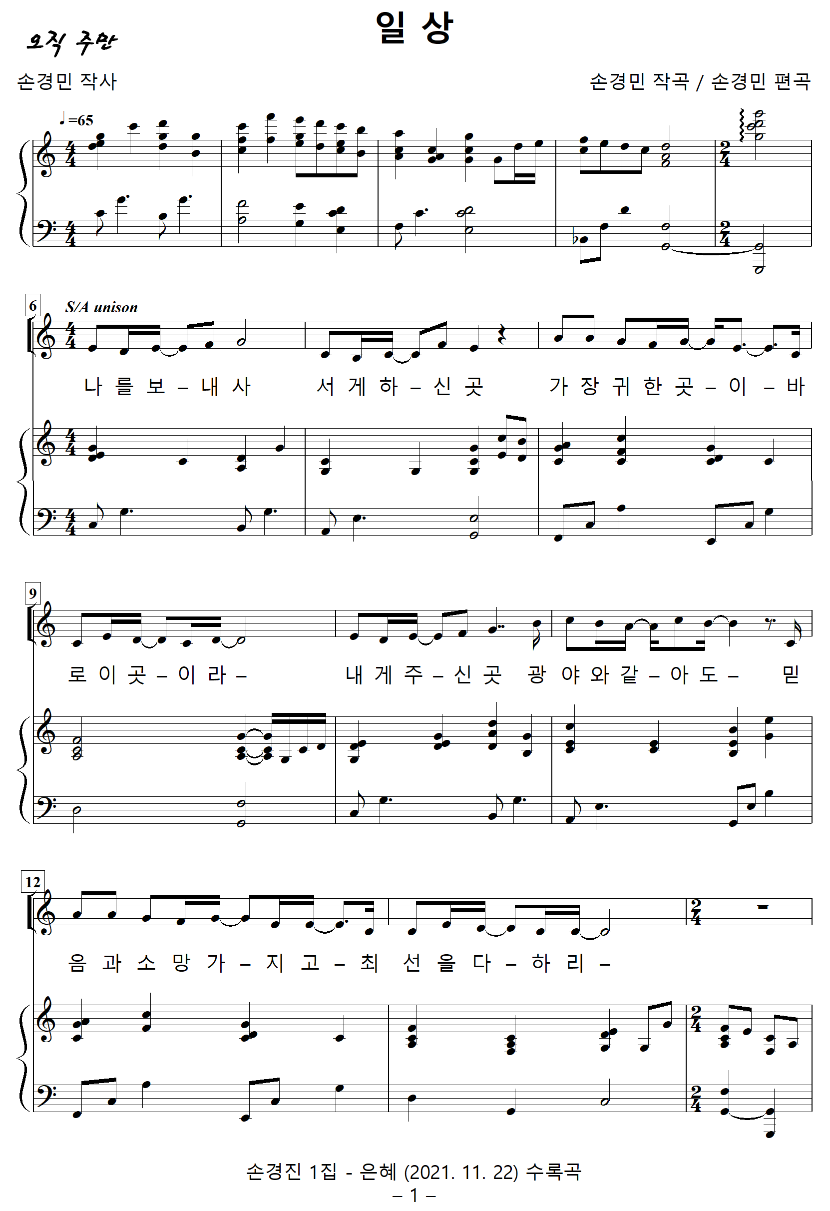 일상 / 나를 보내사 서게 하신 곳 (손경민) NWC / PDF 4부 성가악보 다운받기