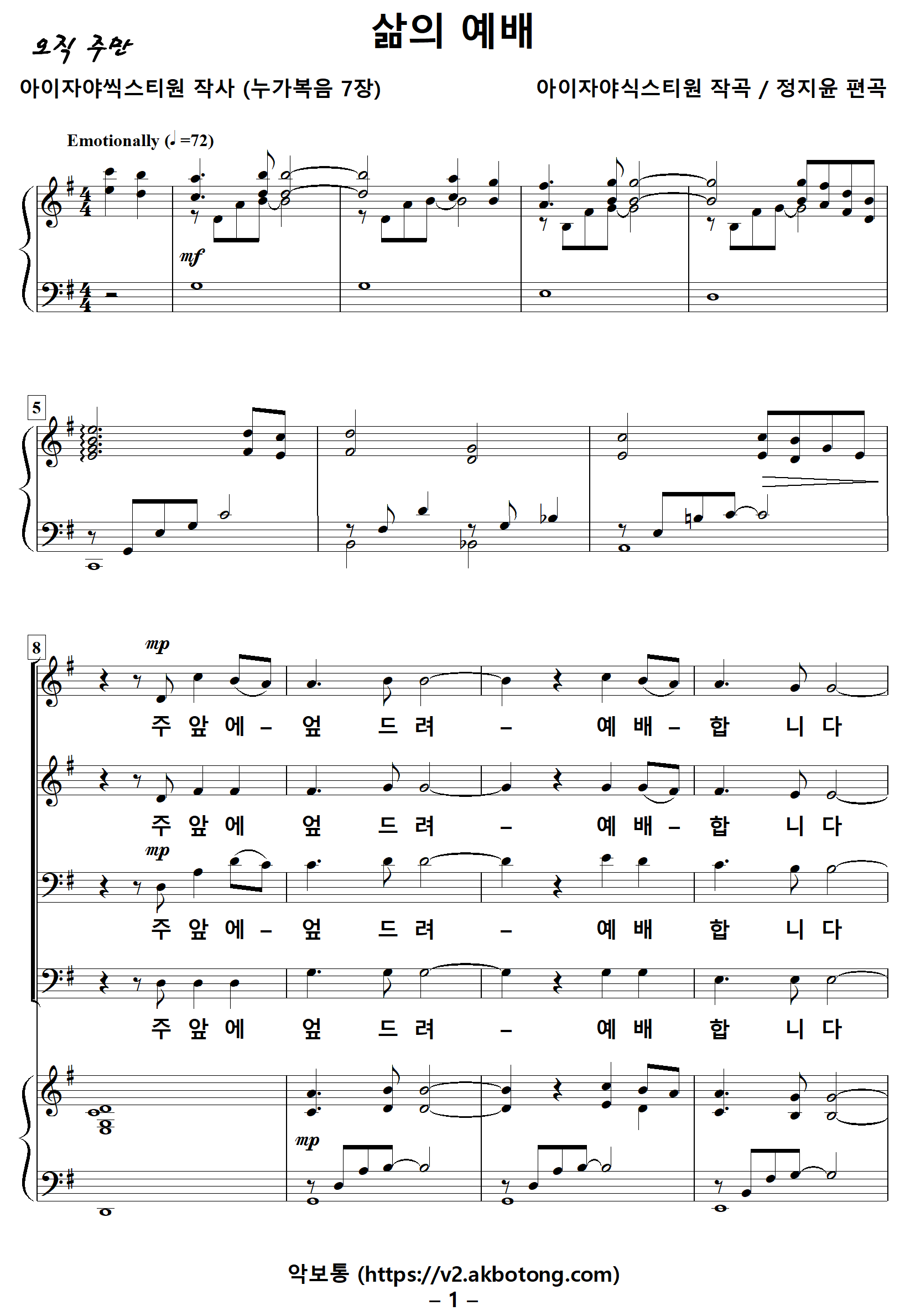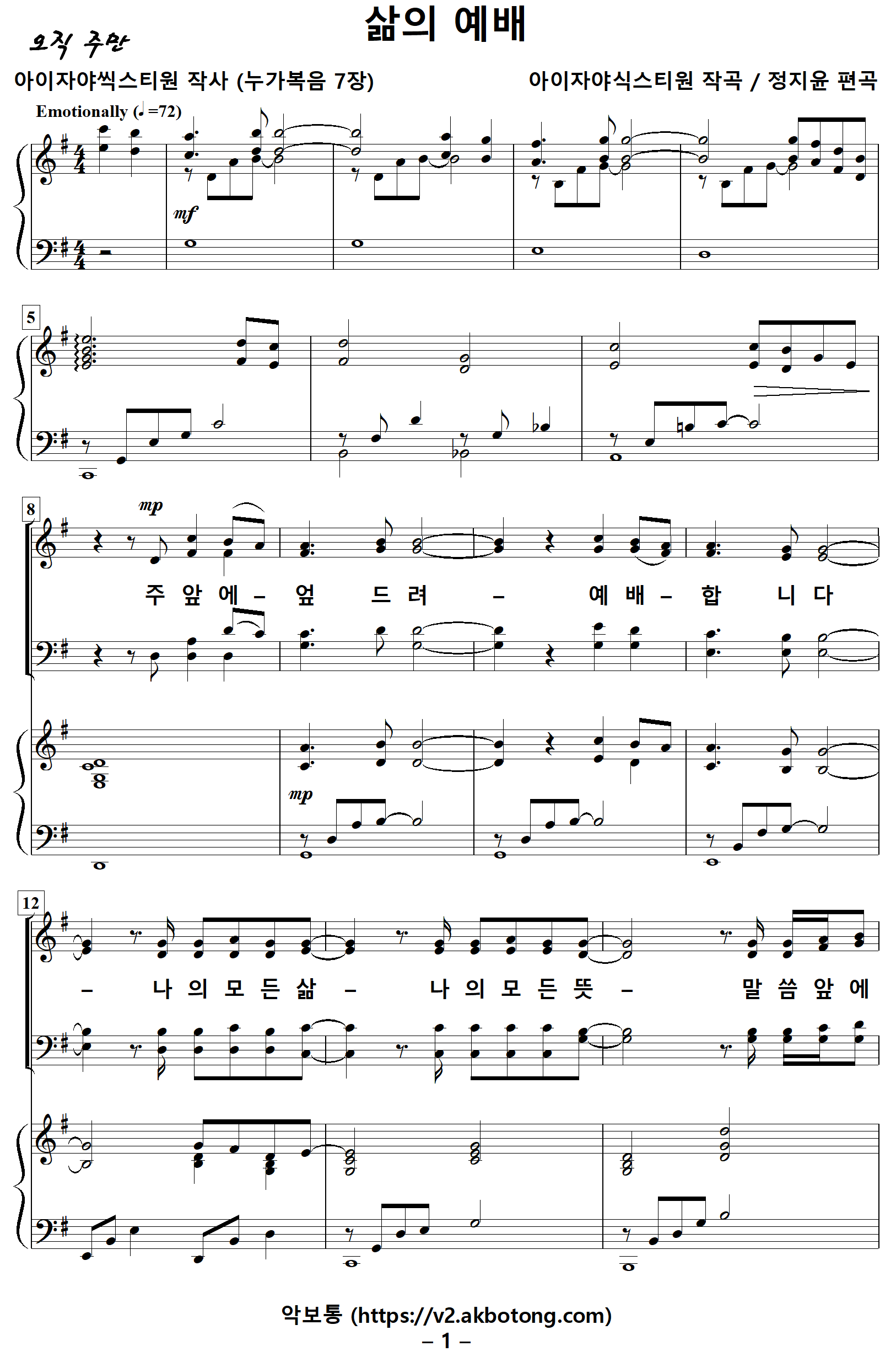 [성가악보] 삶의예배 / 내게임하신주의성령