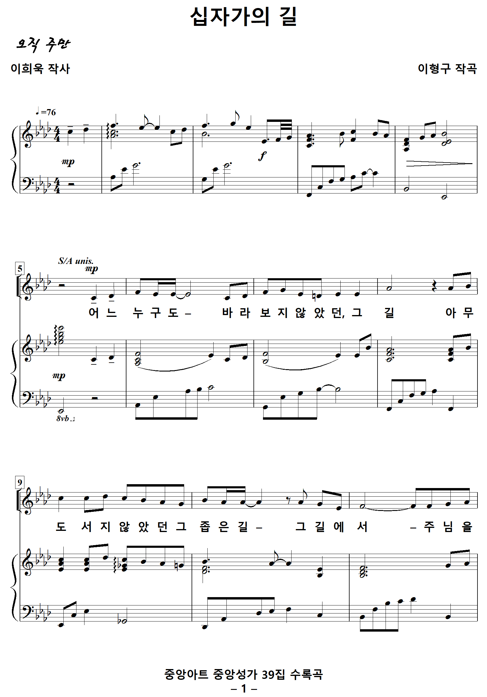 [찬양가사] 십자가의길 / 어느누구도바라보지않았던그길 [이희욱 작사, 이형구 작곡]