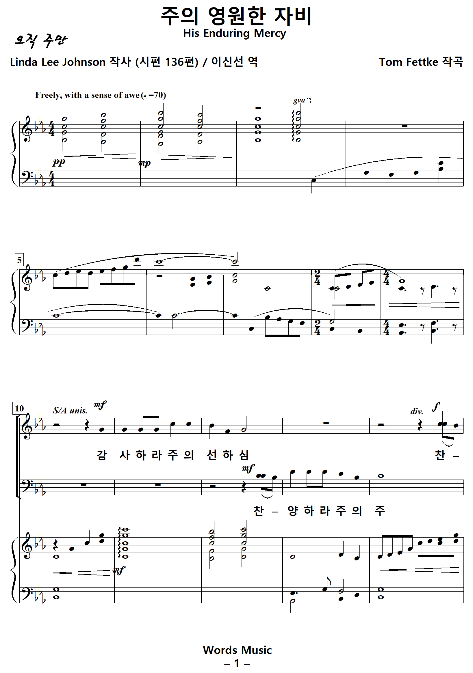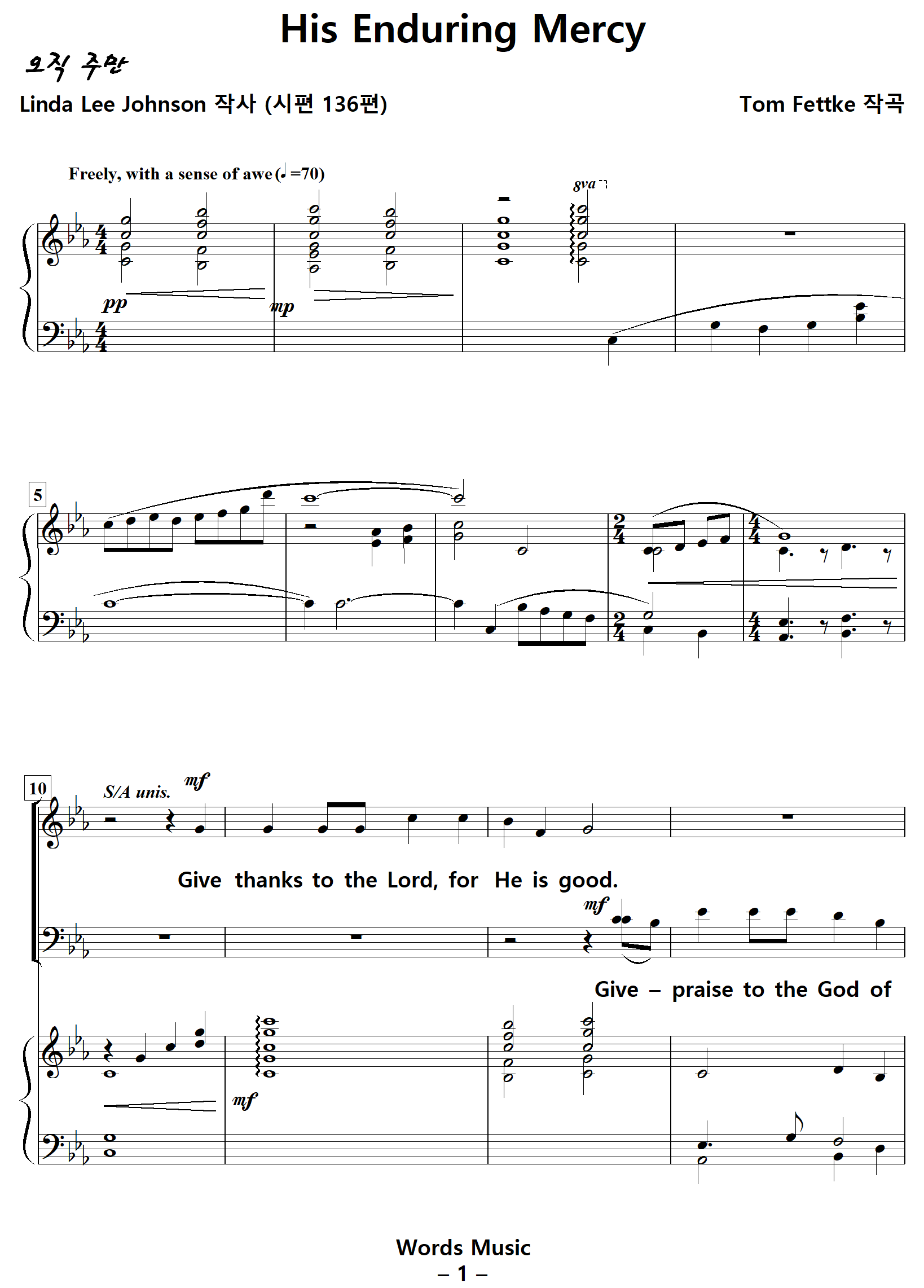 [성가악보] His Enduring Mercy / Give thanks to the Lord