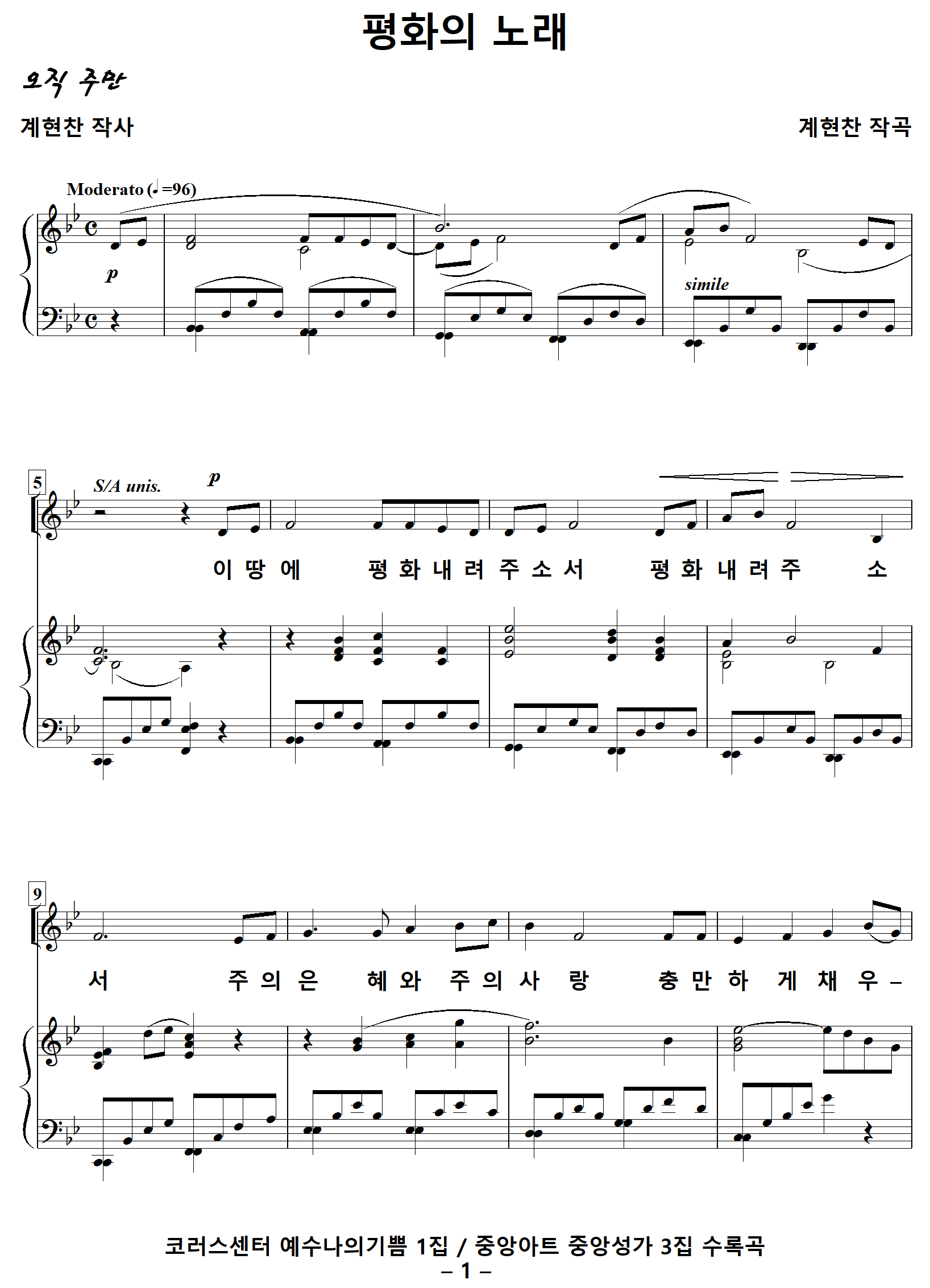 [성가악보] 평화의노래 / 이땅에평화내려주소서 [계현찬 작사, 계현찬 직곡]