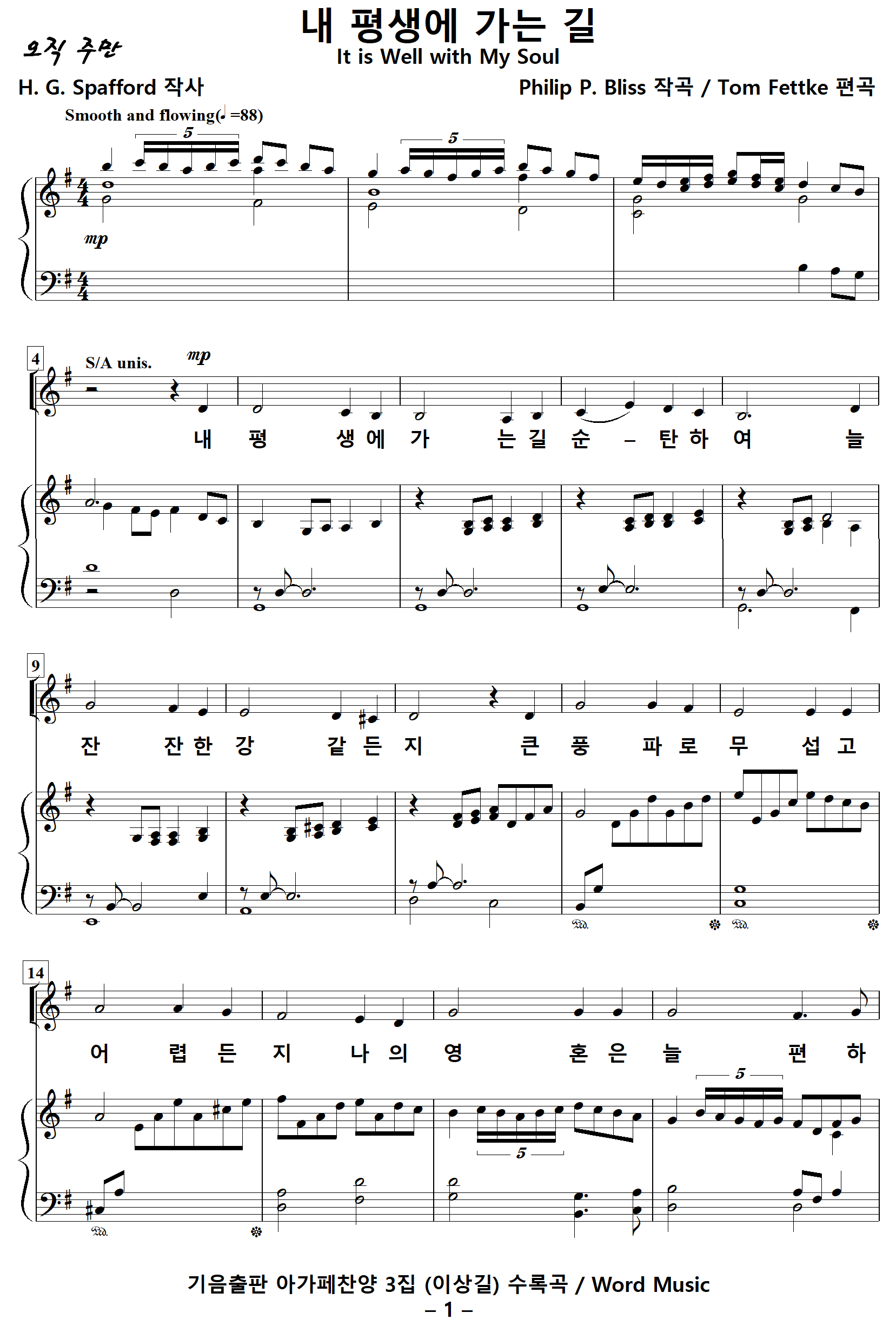 [찬양가사] 내평생에가는길 [H. G. Spafford 작사, Philip P. Bliss 작곡, Tom Fettke 편곡]