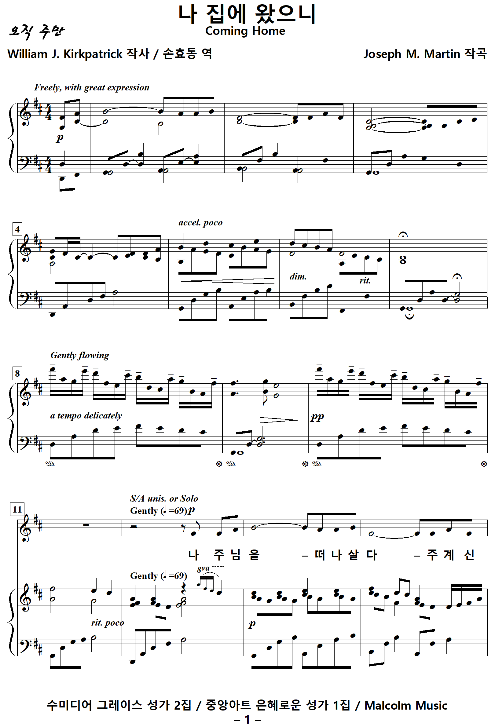 출처 : 수미디어 그레이스 성가 2집 / 중앙아트 은혜로운 성가 1집 / Malcolm Music
