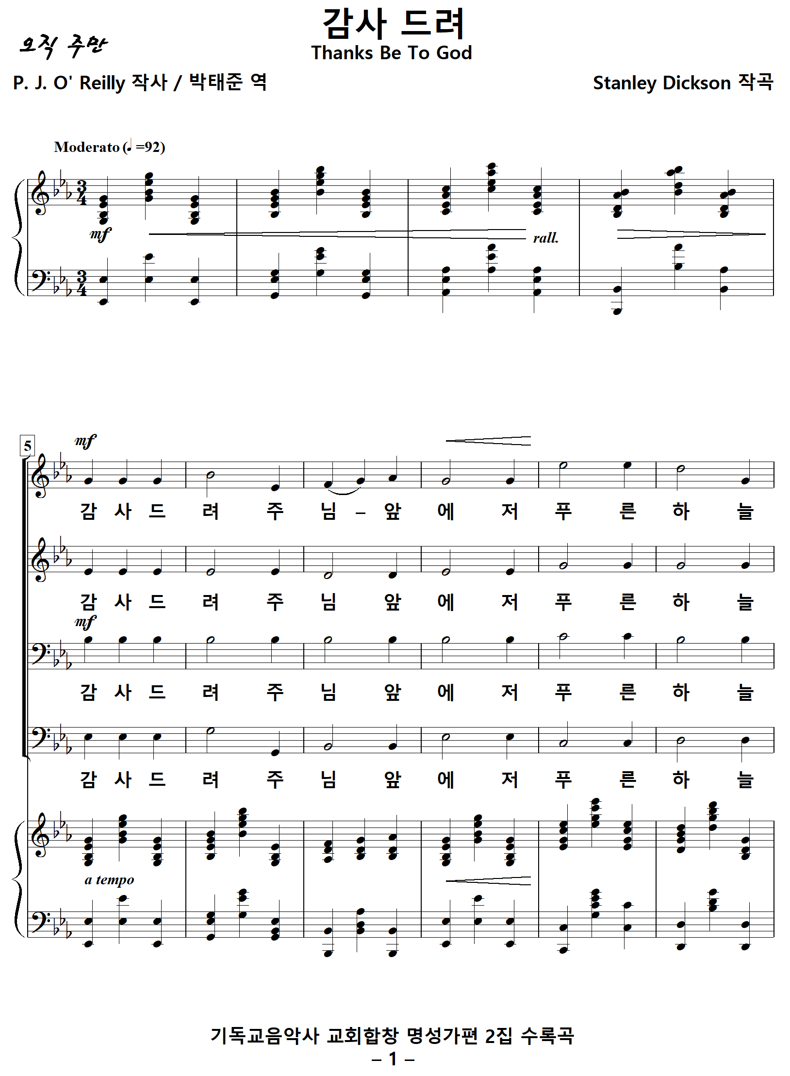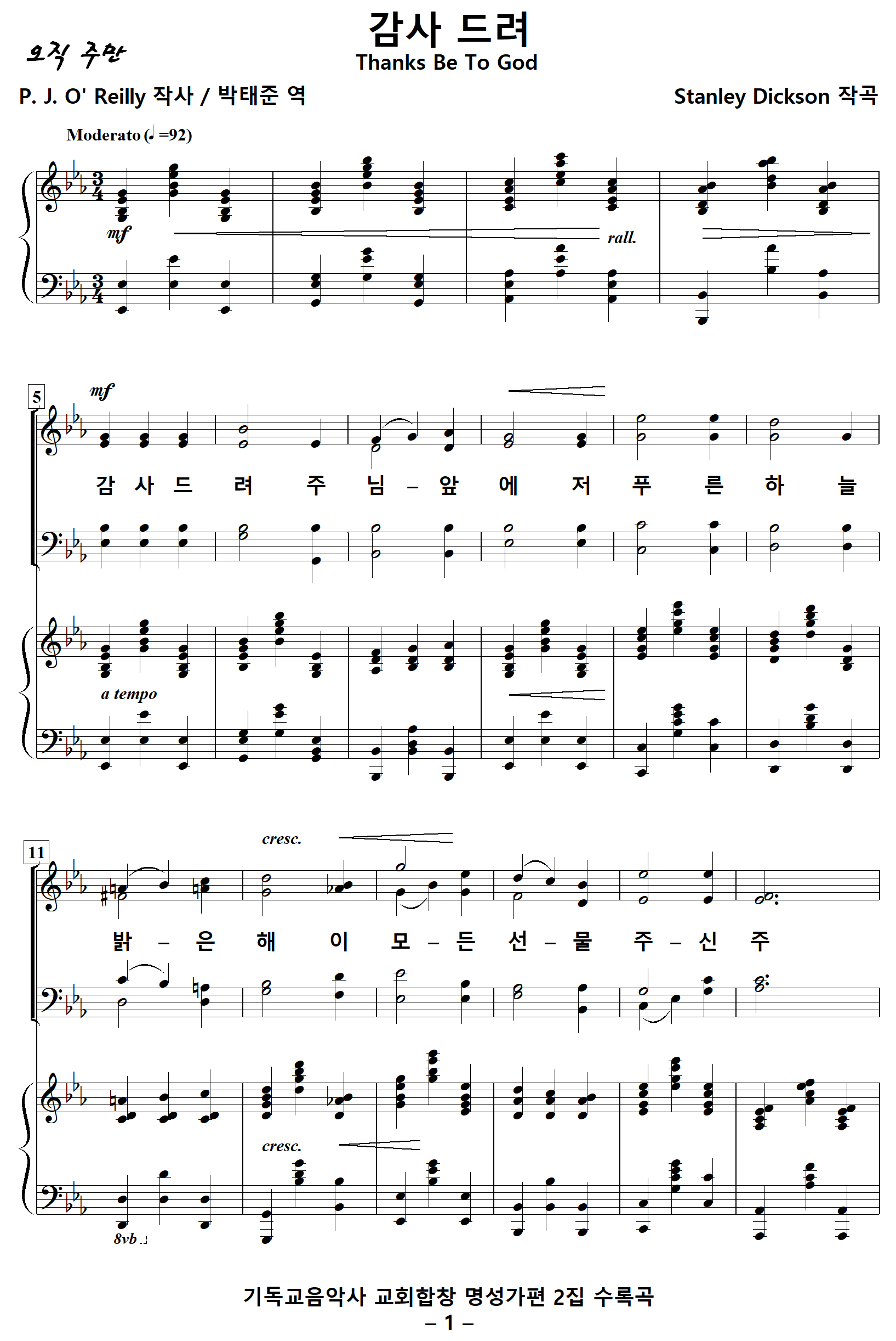 출처 : 기독교음악사 예배합창 명성가편 2집 / MCMXXV (Edwin Ashdown)