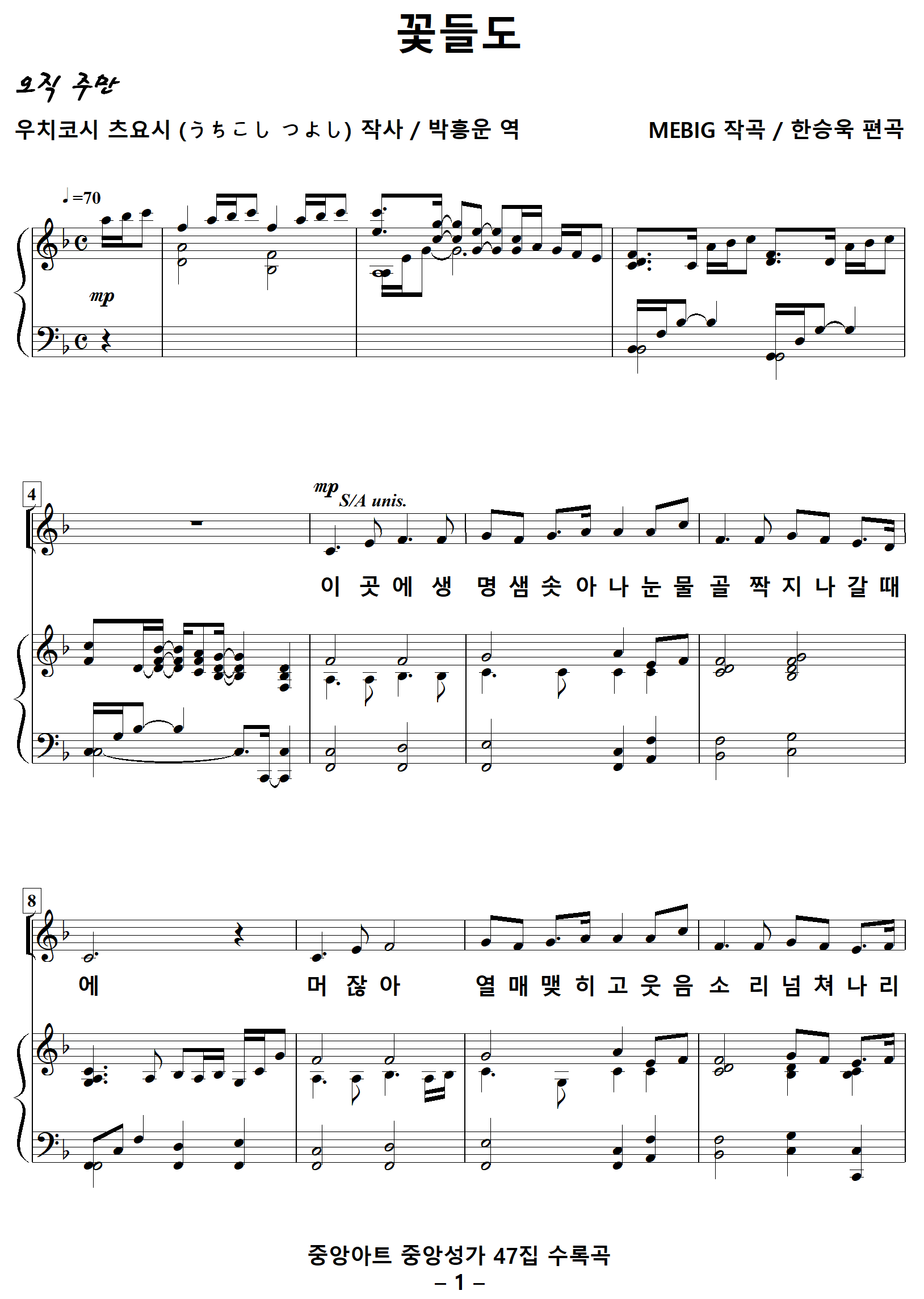 [찬양가사] 꽃들도 / 이곳에생명샘솟아나 [우치코시 츠요시 작사, MEBIG 작곡, 박흥운 역, 한승욱 편곡]