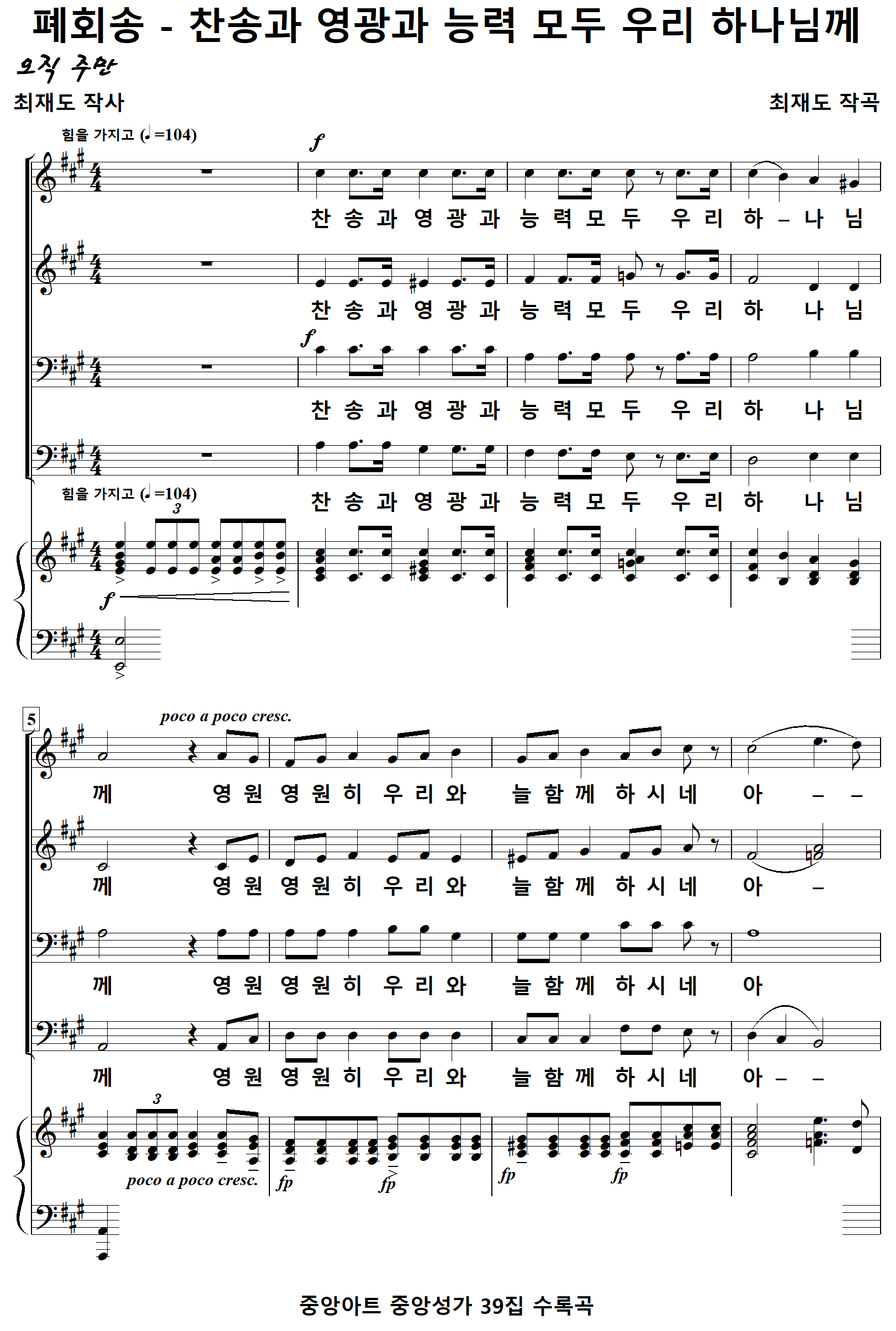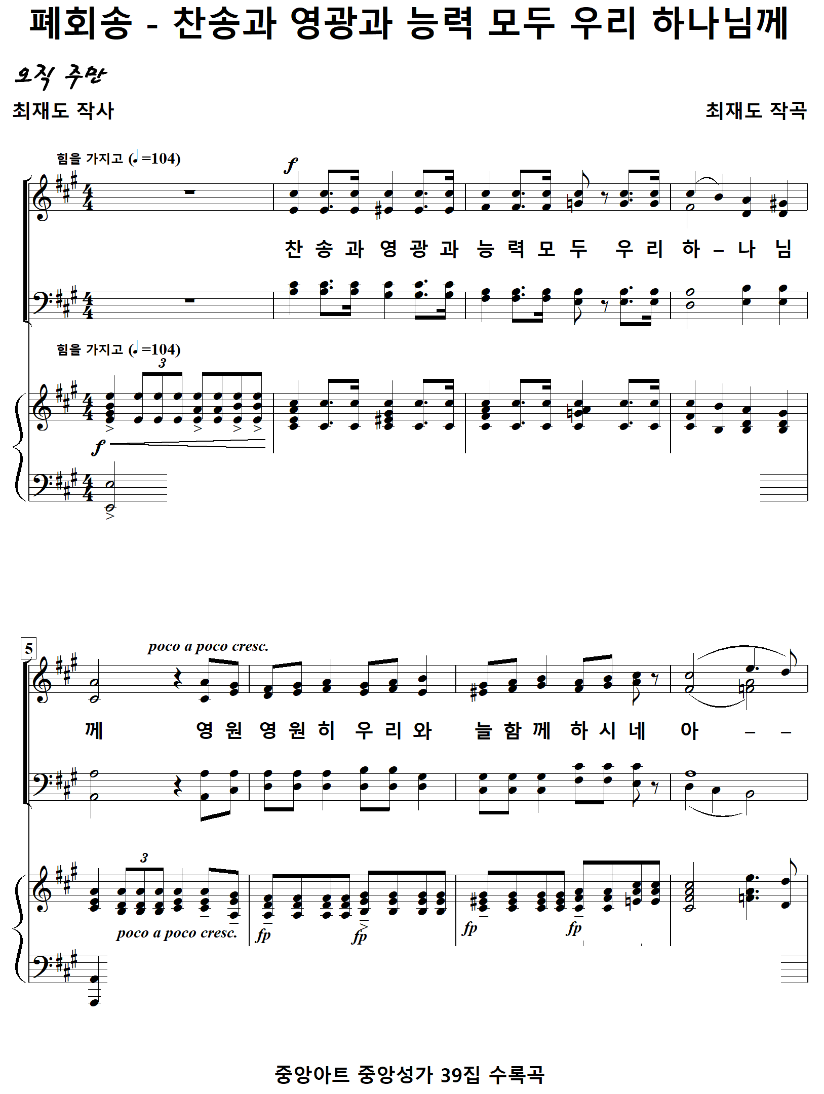 [성가악보] 폐회송 / 찬송과영광과능력모두우리하나님께