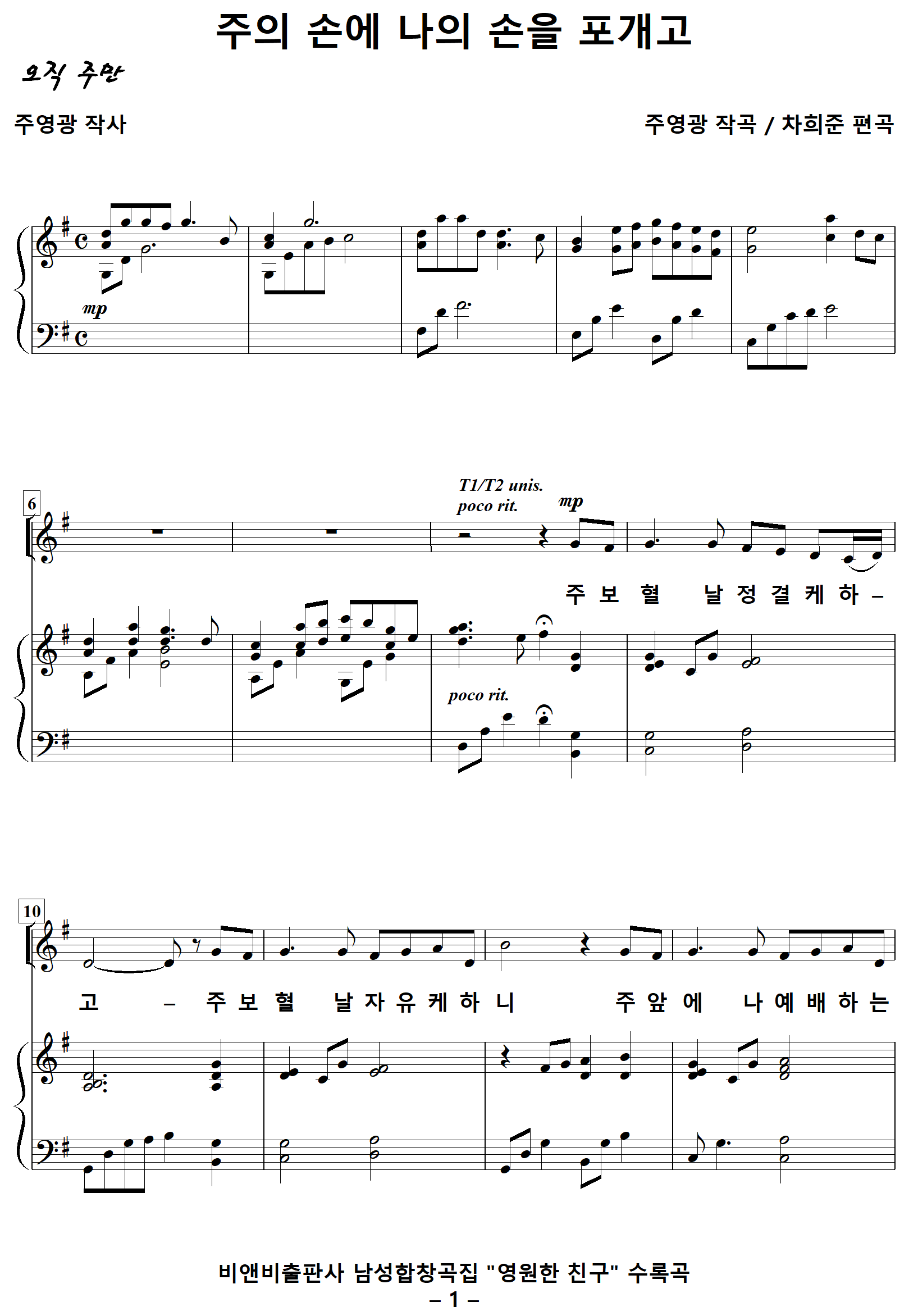 [성가악보] 주의손에나의손을포개고 / 주보혈날정결케하고[주영광 작사, 주영광 작곡, 차희준 편곡]