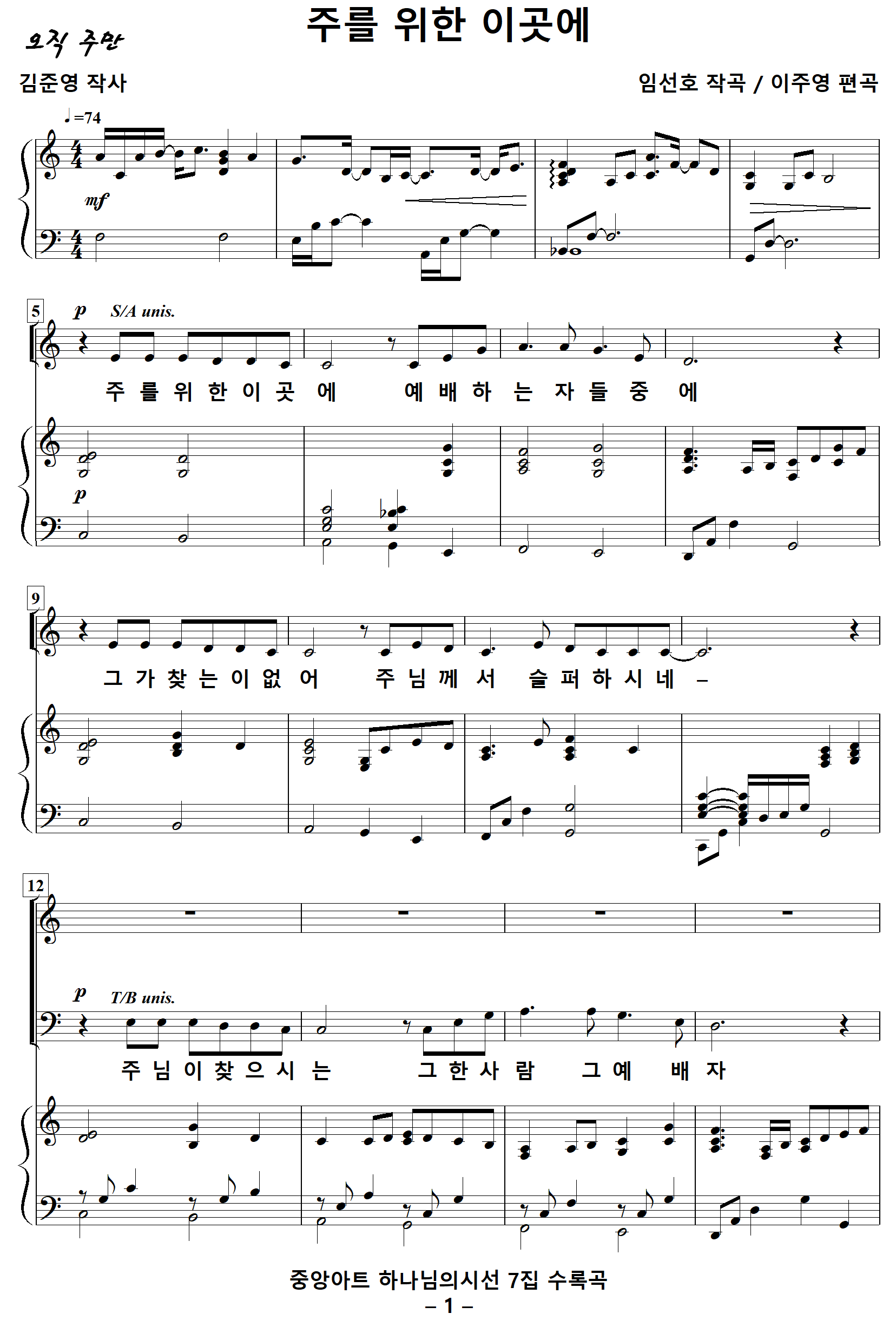 [찬양가사] 주를위한이곳에 [김준영 작사, 임선호 작곡, 이주영 편곡]