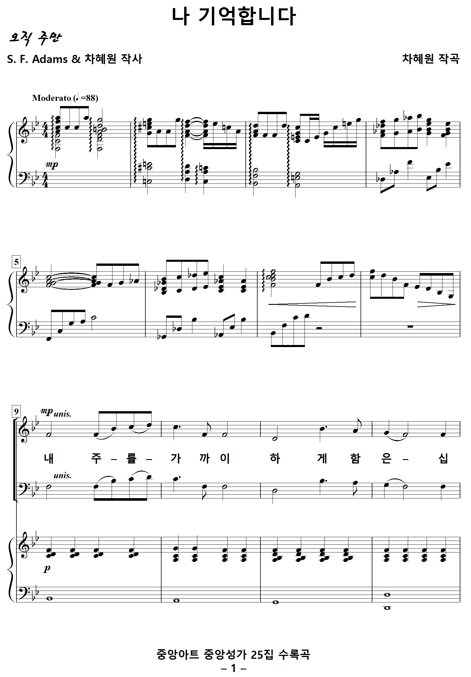 [찬양가사] 나기억합니다 / 내주를가까이하게함은 [S. F. Adams & 차혜원 작사, 차혜원 작곡]