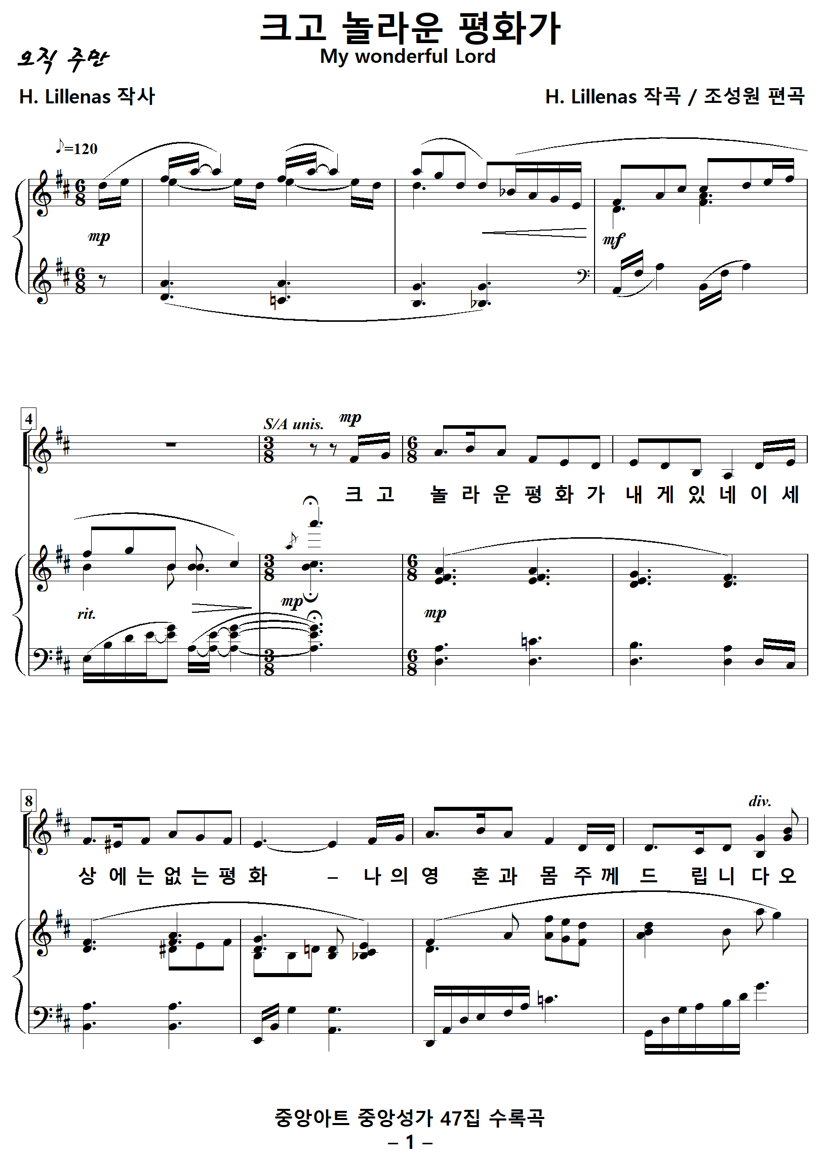 [찬얃가사] 크고놀라운평화가 [H. Lillenas 작사, H. Lillenas 작곡, 조성원 편곡]