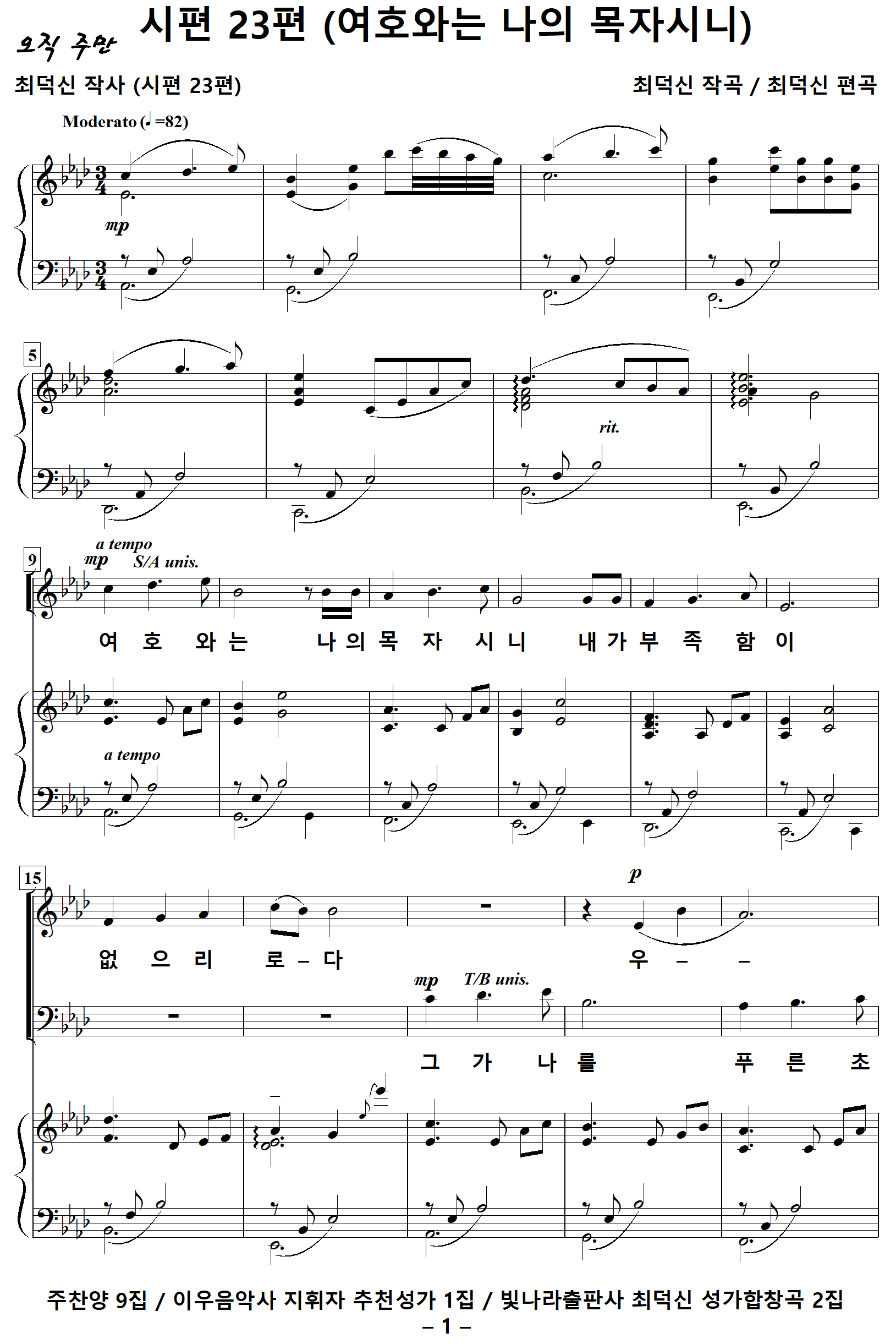 출처 : 주찬양 9집 / 이우음악사 지휘자 추천성가 1집 / 빛나라출판사 최덕신 성가합창곡 2집
