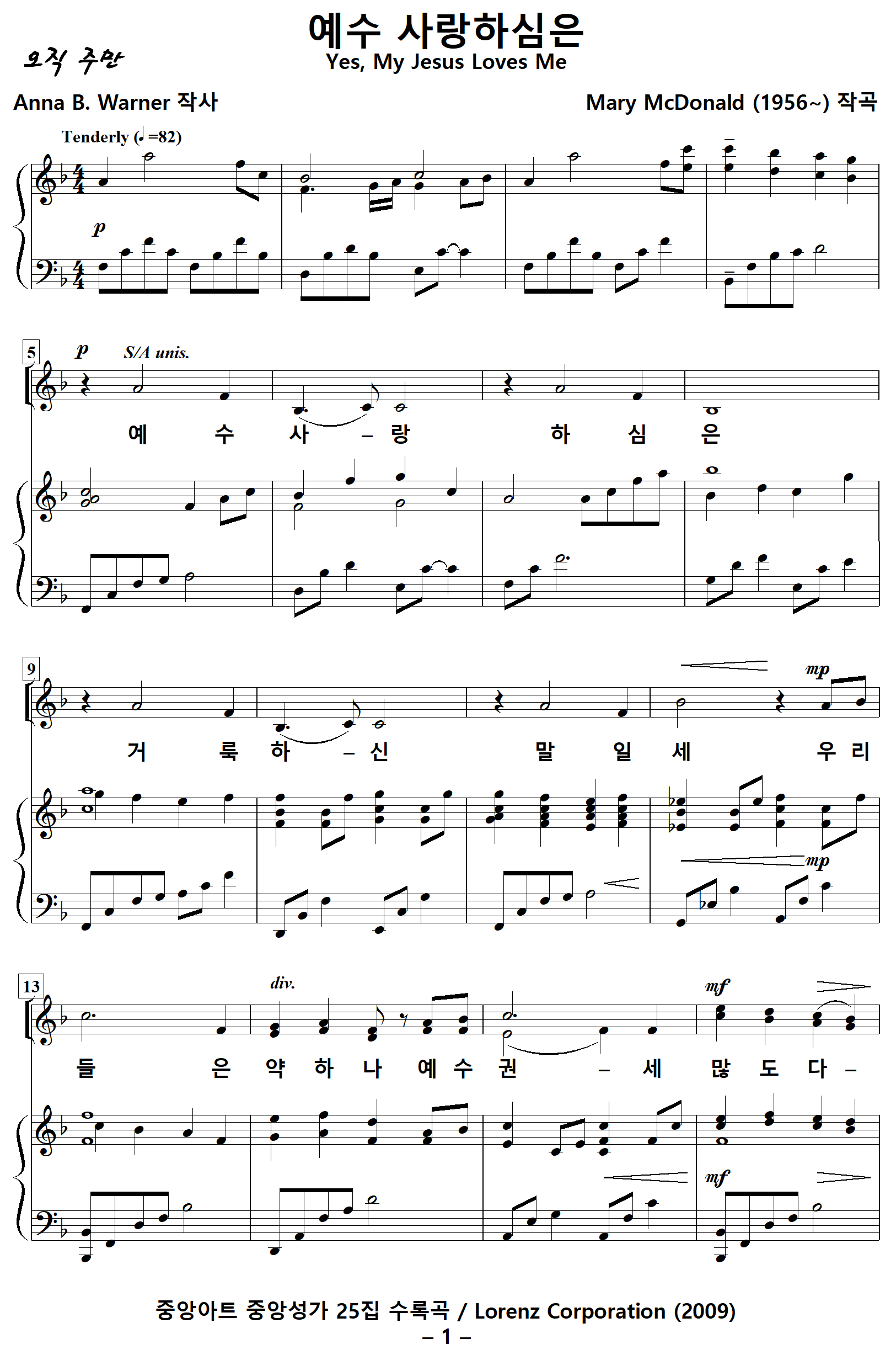 출처 : 중앙아트 중앙성가 25집 수록곡 / Lorenz Corporation (2009)