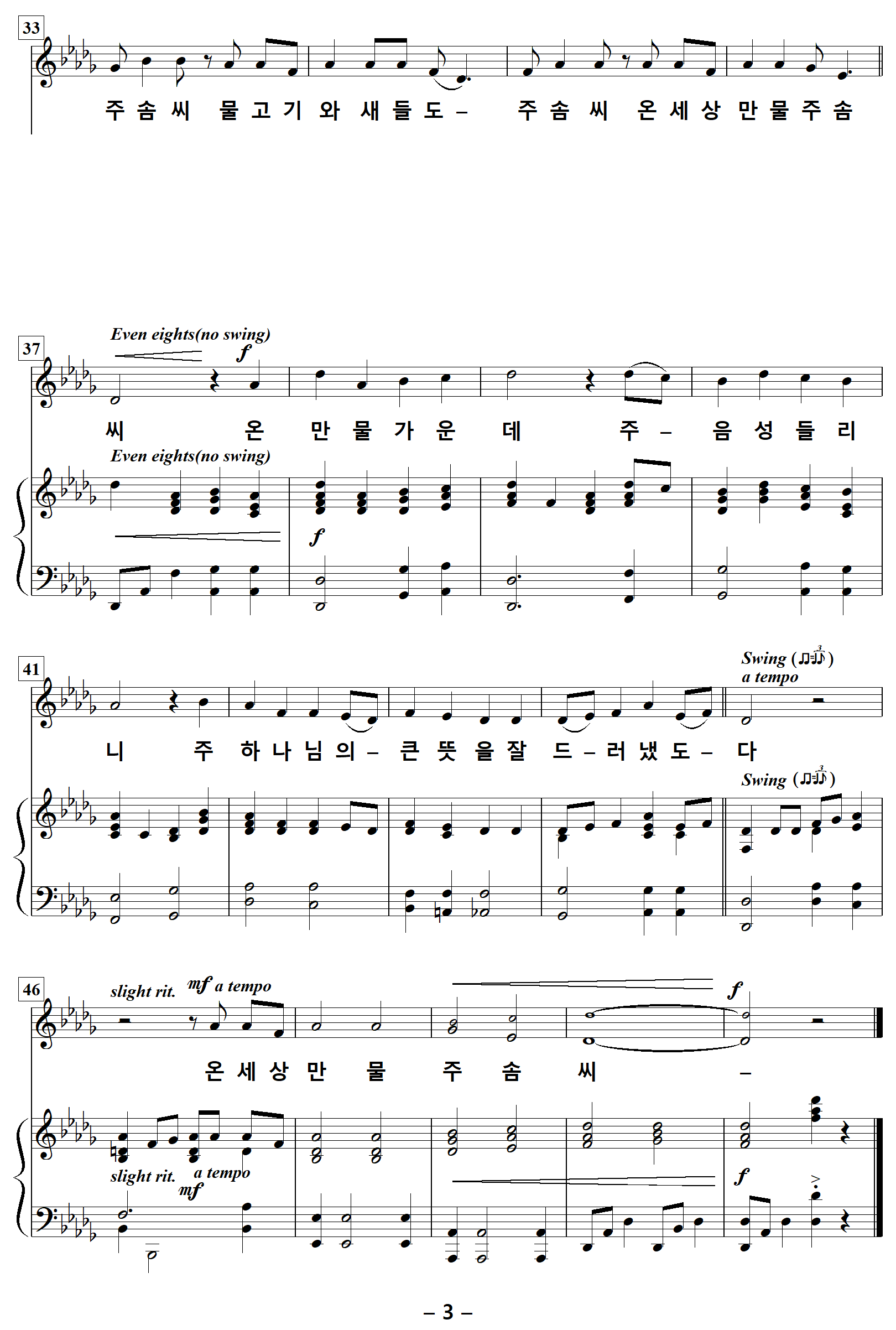 ** 이곡은 솔로곡이나 엔딩부분이 옵션으로 여성중창으로 사용할 수 있는 악보입니다.