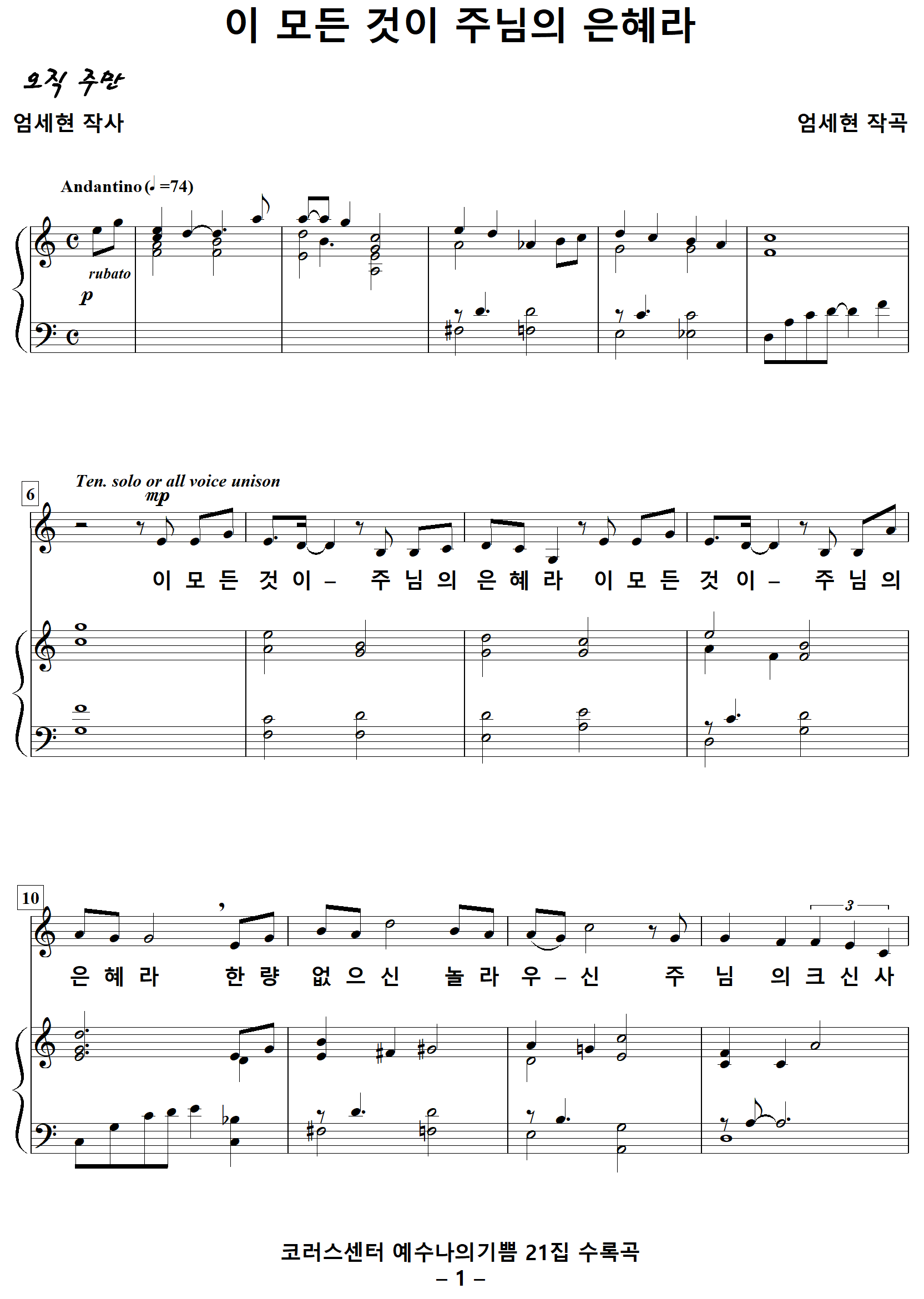 [찬양가사] 이모든것이주님의은혜라 [엄세현 작사, 엄세현 작곡]