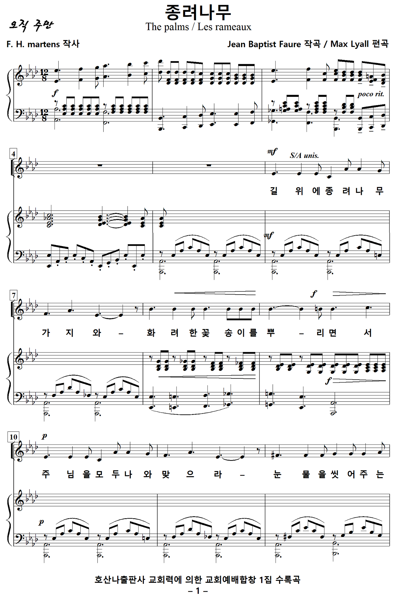 [찬양가사] 종려나무 / 길위에종려나무가지와 [F. H. Martens 작사, J. B. Faure 작곡]