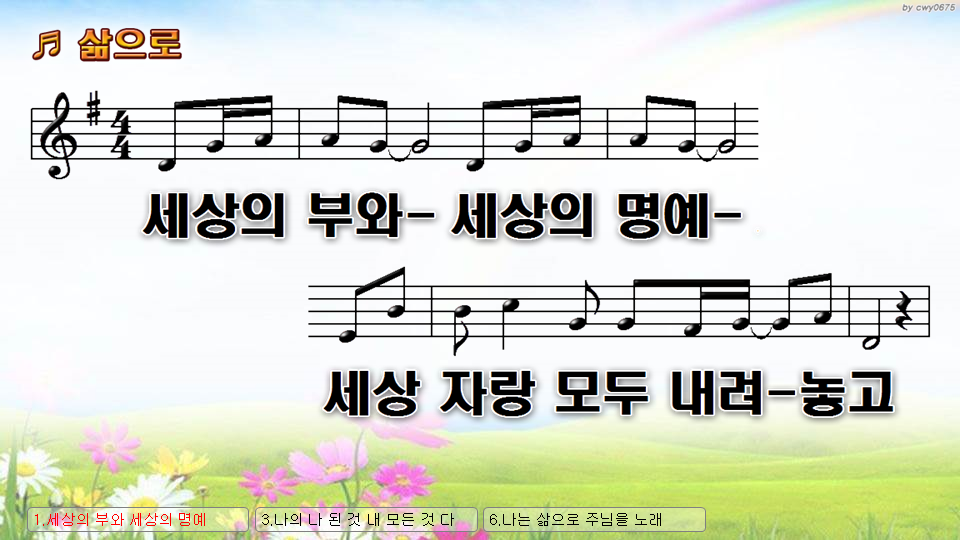 [PPT악보] 삶으로 / 세상의 부와 세상의 명예 [와이드] 작성자신의손|작성시간22.09.07|조회수655 목록 댓글 0 글자크기 작게가 글자크기 크게가 삶으로(세상의부와세상의명예)-와이드-6.ppt809.00KB[PPT악보] 삶으로 / 세상의부와세상의명예 ♡ 오직 주만 / cafe.daum.net/lordfirst 첨부파일첨부된 파일이 2개 있습니다. png 파일 삶으로(세상의부와세상의명예)-와이드-6.png 다운로드 ppt 파일 삶으로(세상의부와세상의명예)-와이드-6.ppt 다운로드 다음검색 현재 게시글 추가 기능 열기 북마크 공유하기 신고 센터로 신고 댓글 댓글 0 댓글쓰기 답글쓰기 댓글 리스트