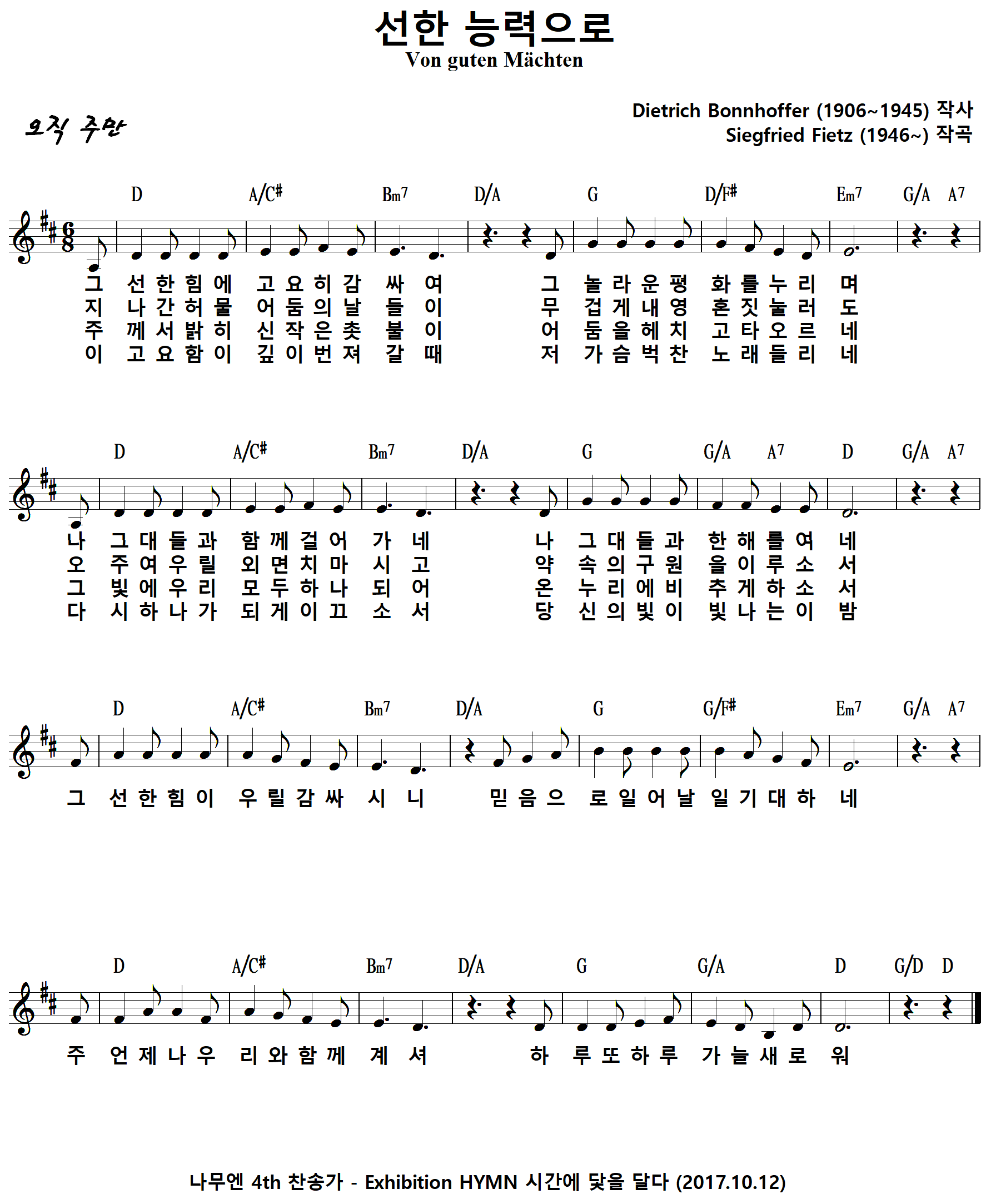 [CCM악보] 선한 능력으로 / 그 선한 힘에 고요히 감싸여 [Siegfried Fietz, 나무엔 4th 찬송가, D키]