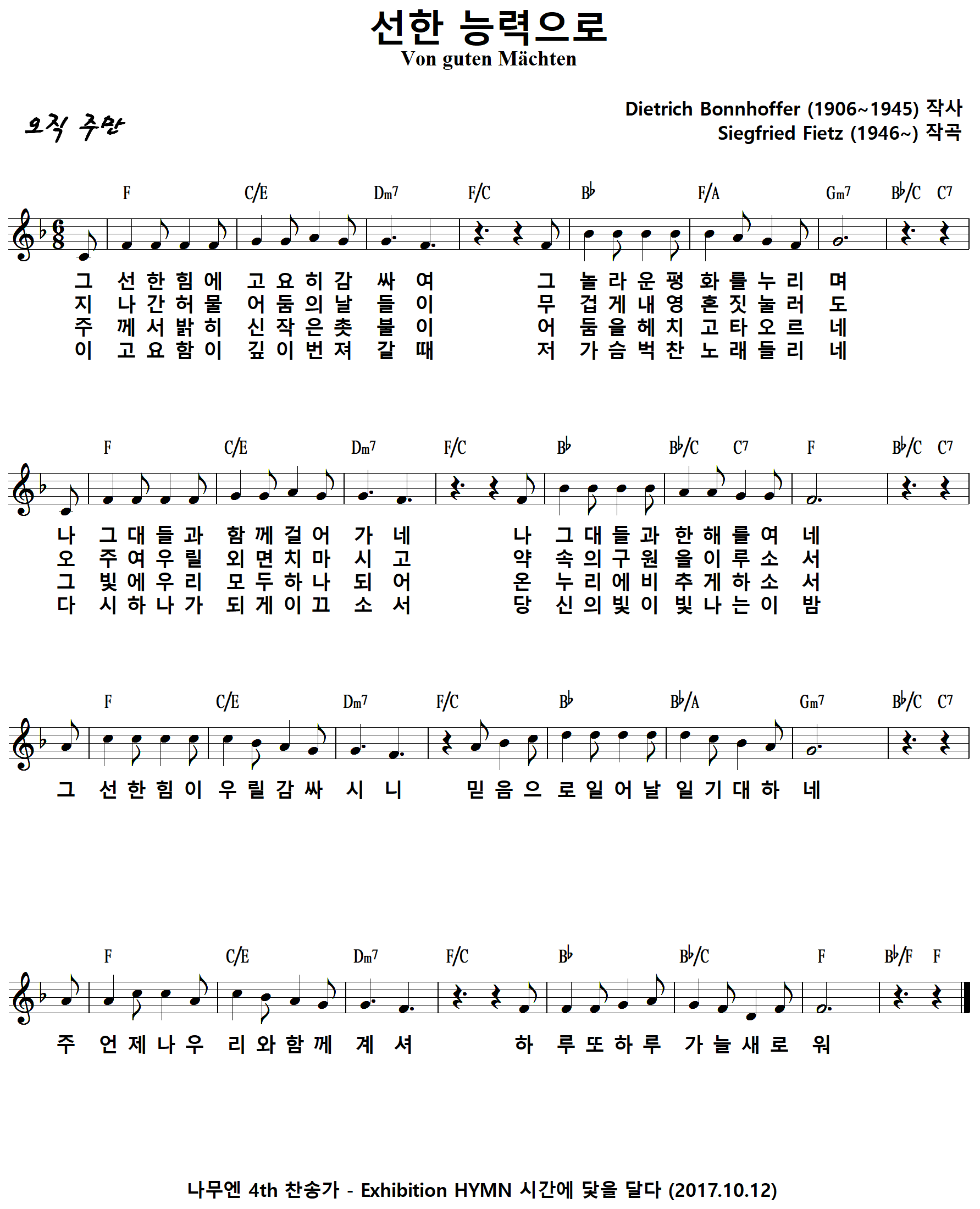 [CCM악보] 선한 능력으로 / 그 선한 힘에 고요히 감싸여 [Siegfried Fietz, 나무엔 4th 찬송가, F키]
