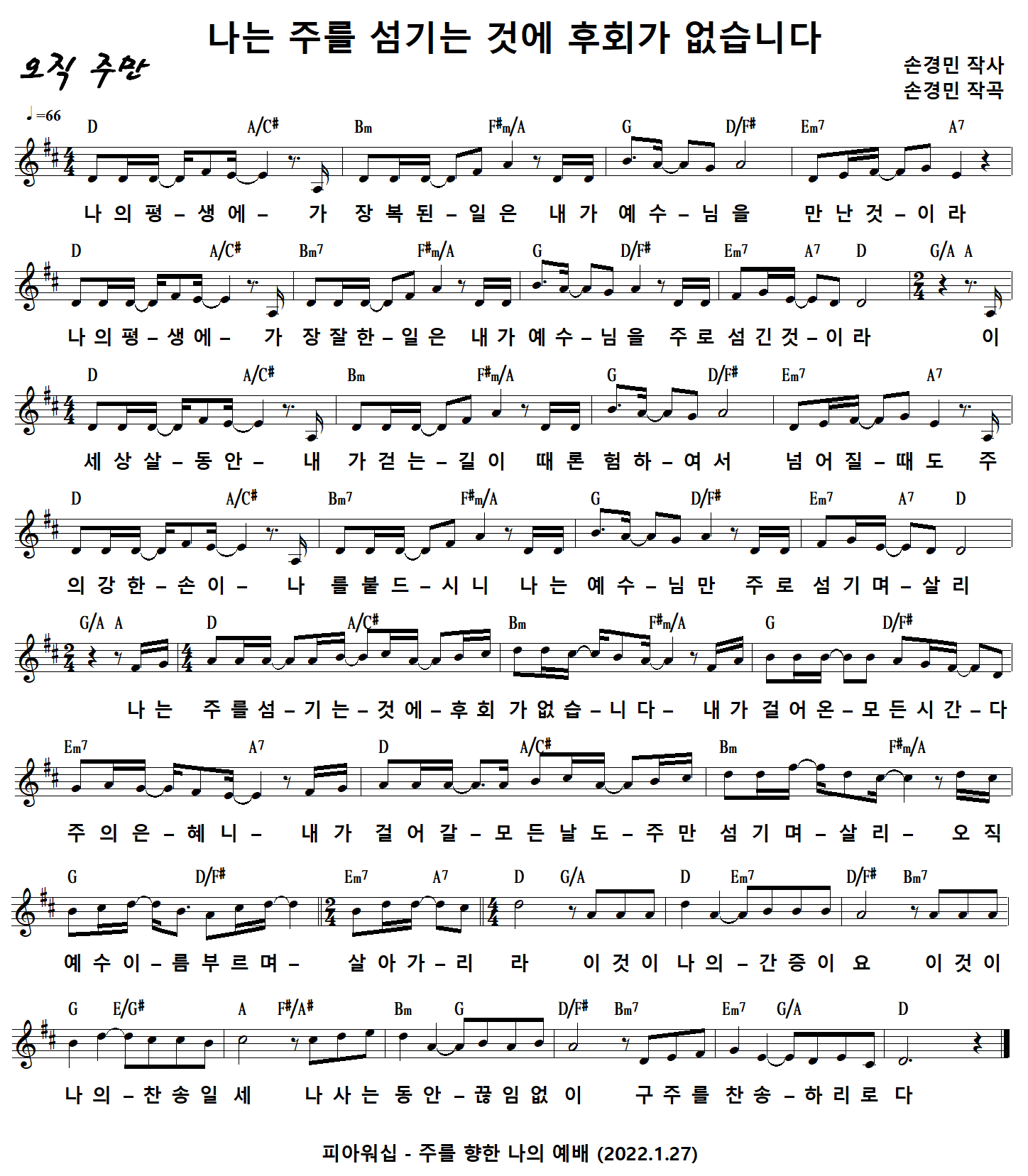 [CCM가사] 나는주를섬기는것에후회가없습니다 / 나의평생에가장복된일은 [손경민 작사, 손경민 작곡]