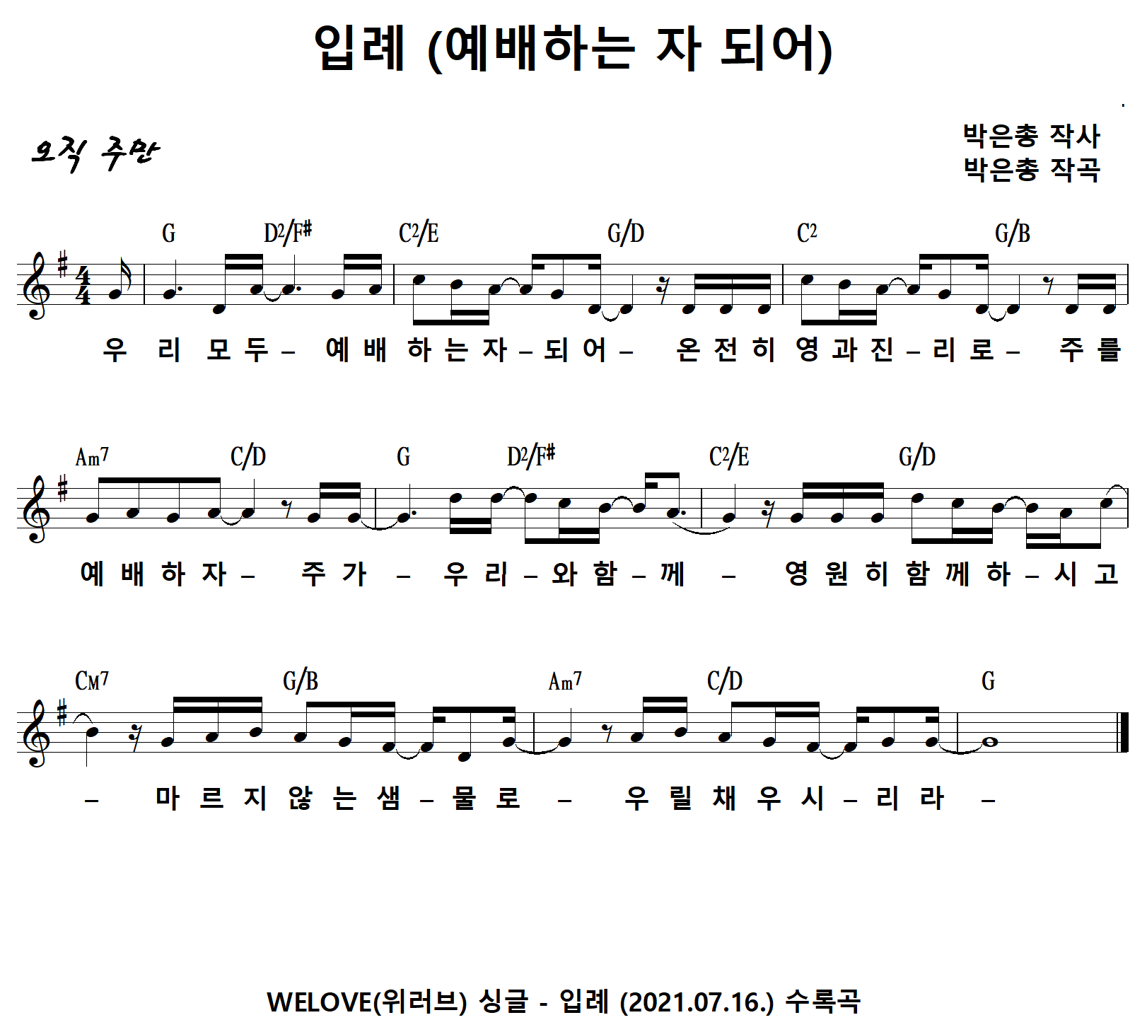 [CCM가사] 입례 / 우리모두예배하는자되어 [박은총 작사, 박은총 작곡]