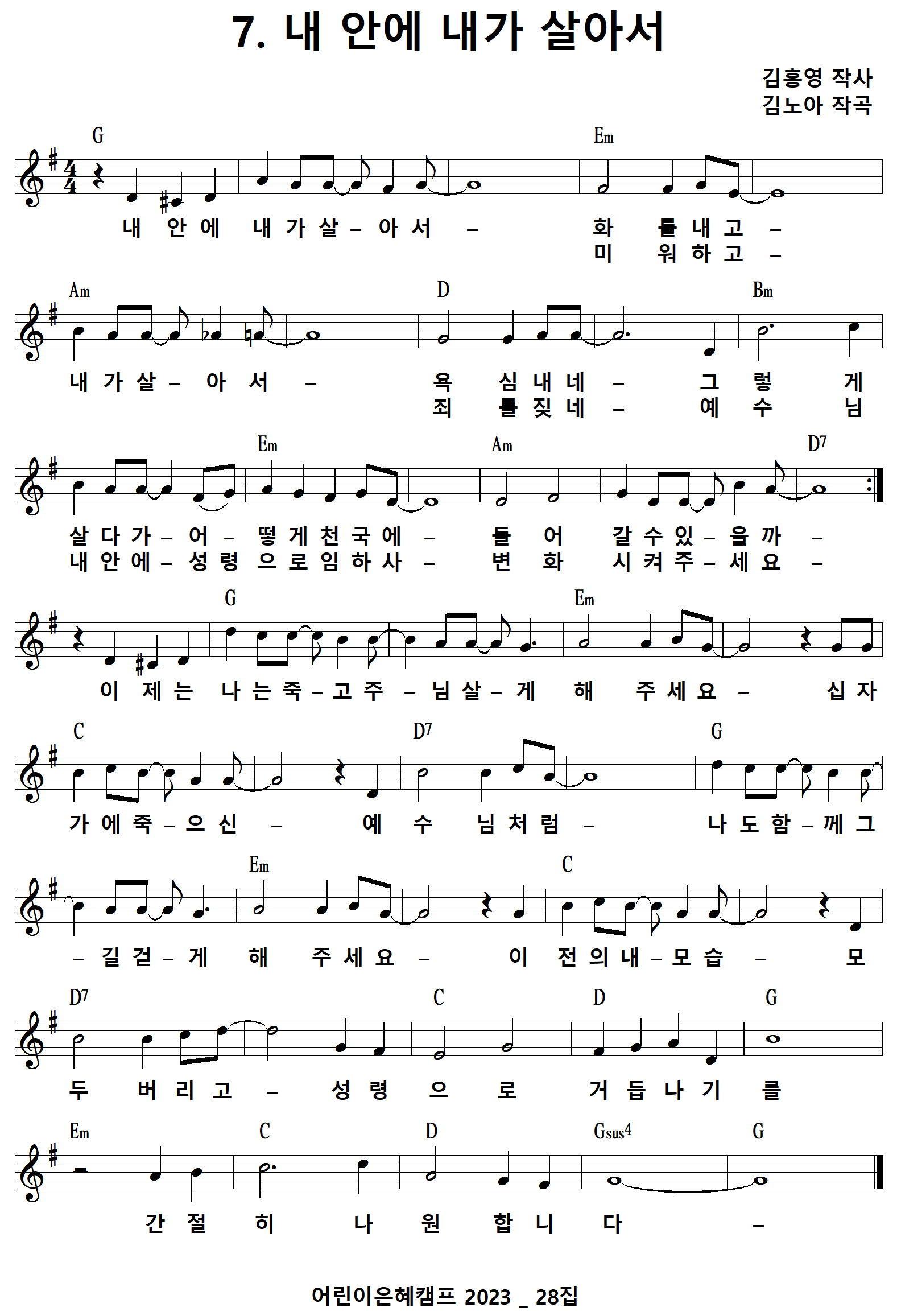 [CCM가사] 내안에내가살아서 [김흥영 작사, 김노아 작곡]