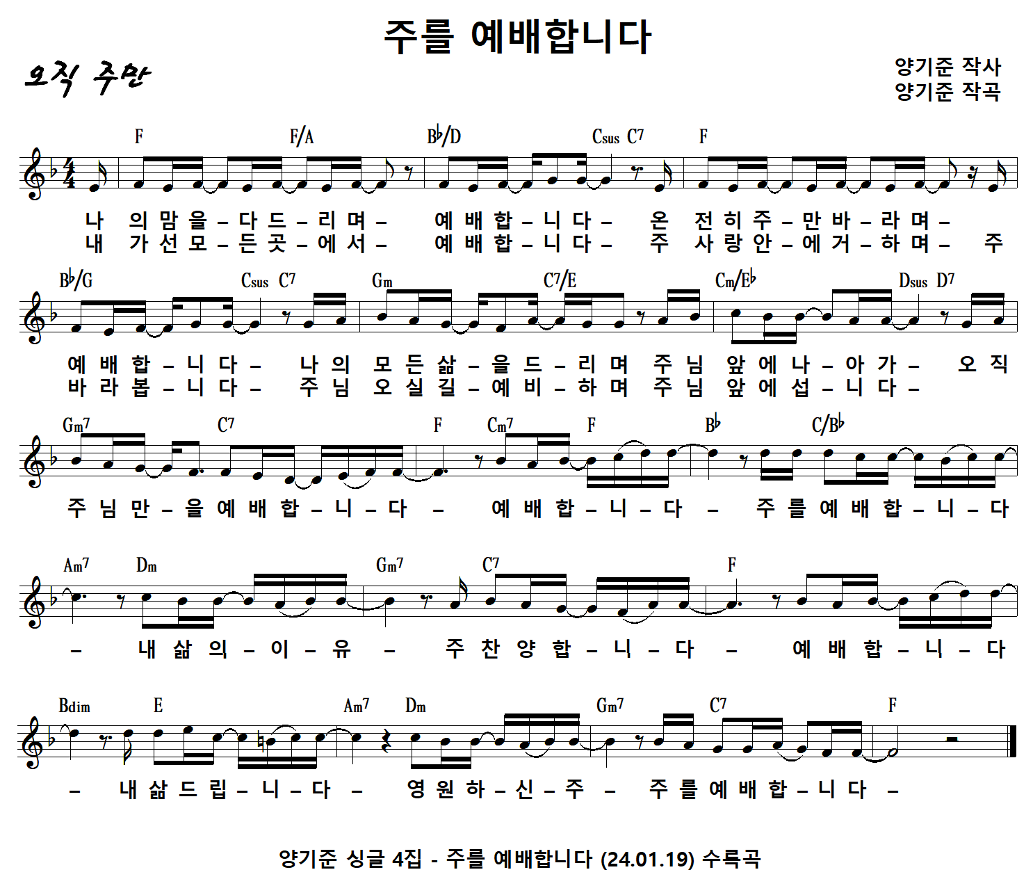 ** 이 악보는 저작권자 양기준님 오직 주만에 악보를 공개하며 홍보를 요청한 악보입니다.
