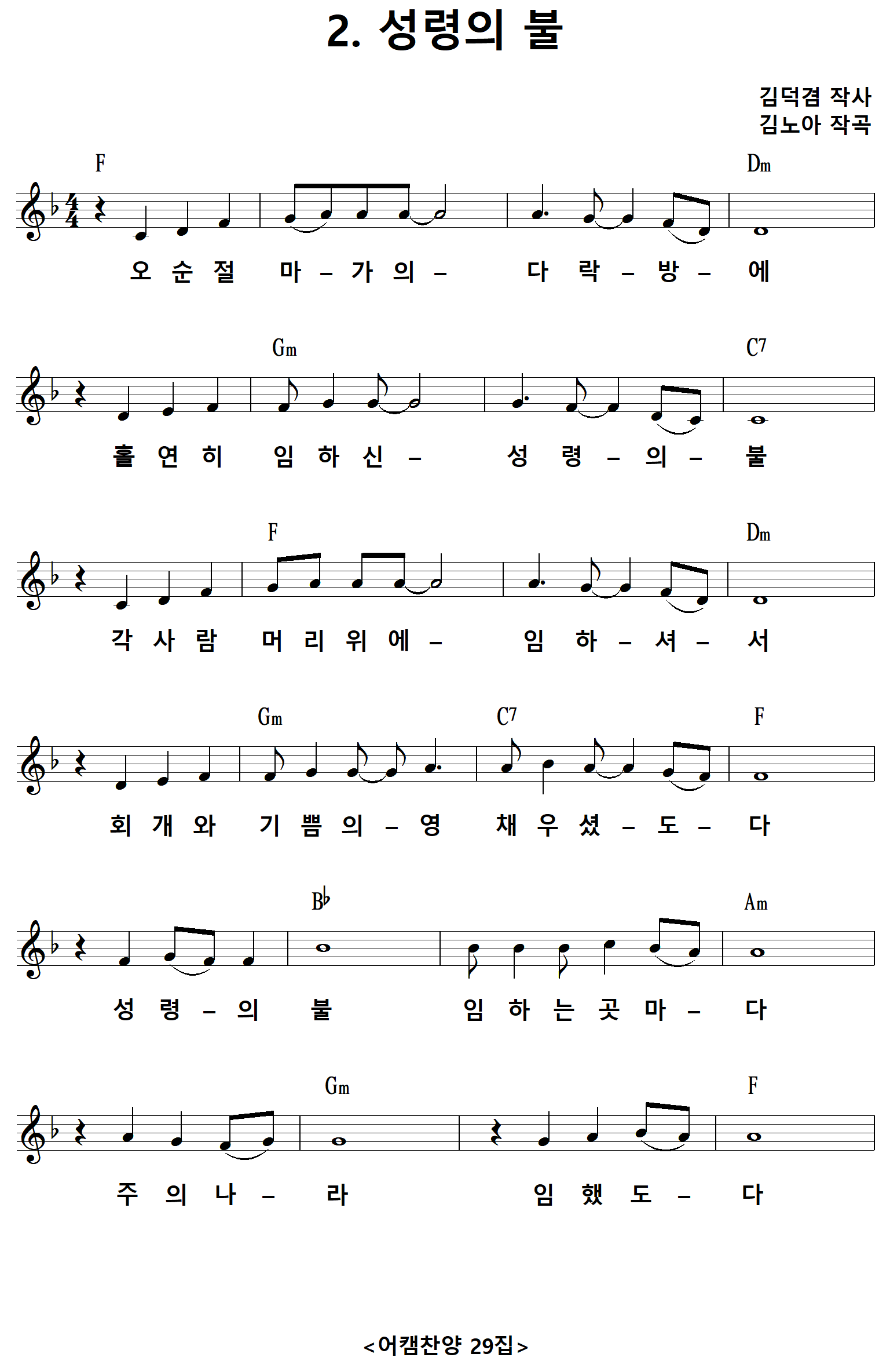 [CCM가사] 성령의불 / 오순절마가의다락방에 [김덕겸 작사, 김노아 작곡]