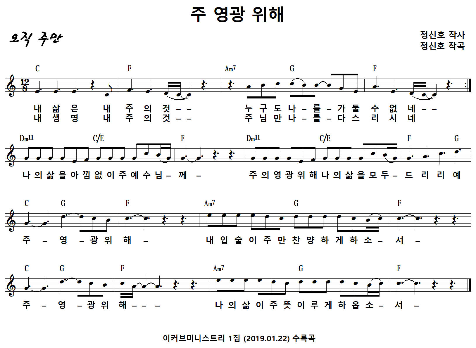 [CCM가사] 주영광위해 / 내삶은내주의것 [정신호 작사, 정신호 작곡]