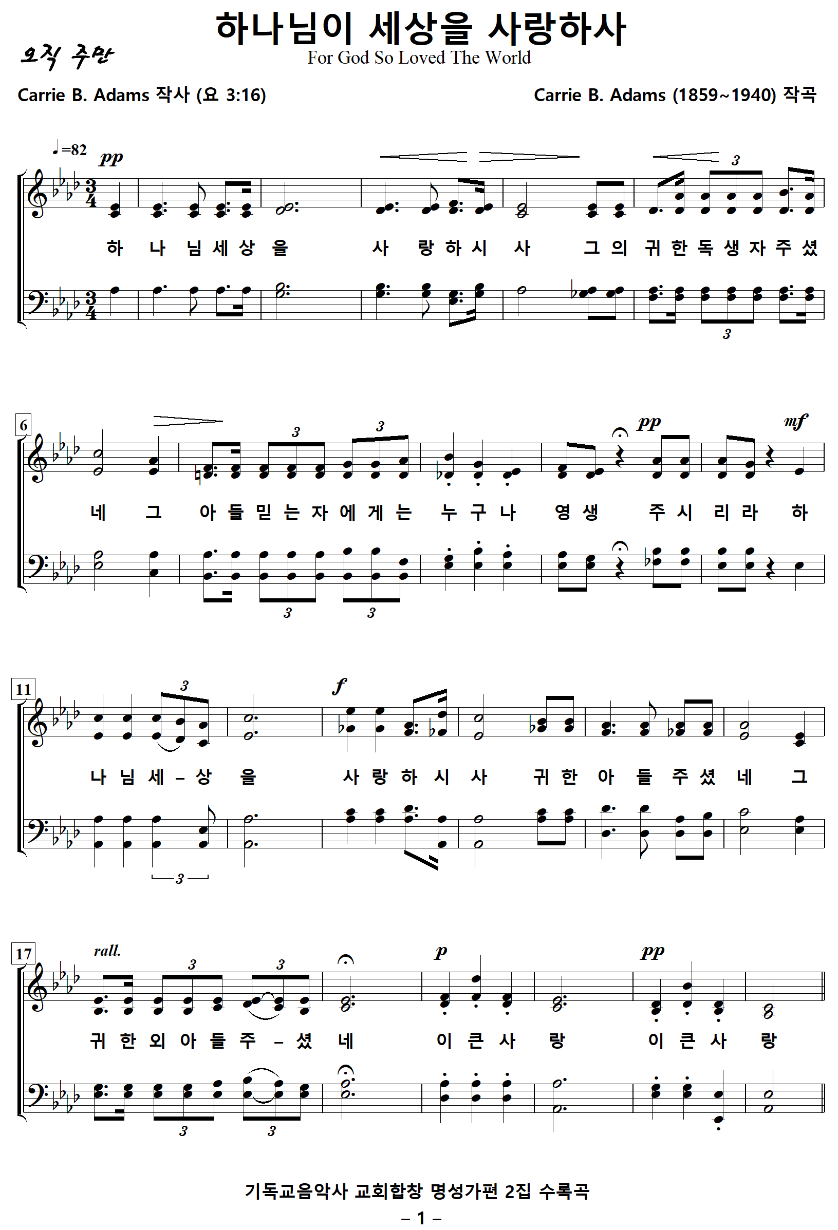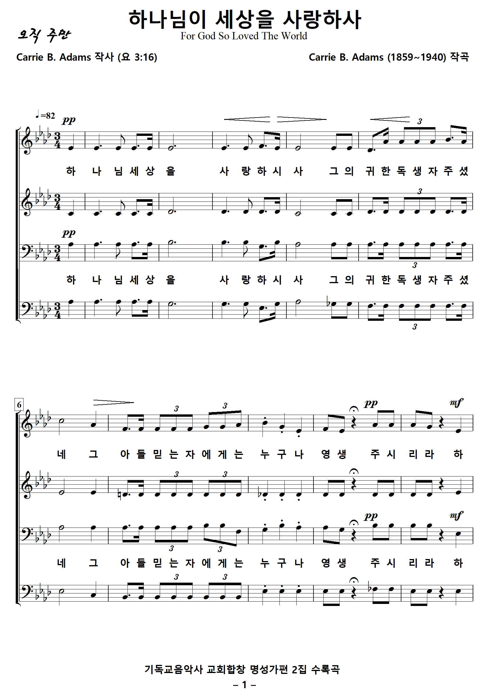 작사 : Carrie Belle Wilson Adams (요 3:16)