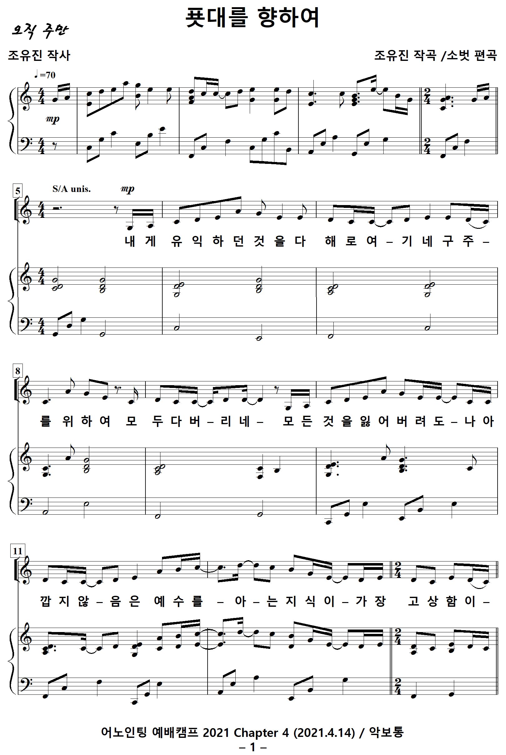 출처 : 어노인팅 예배캠프 2021 Chapter 4 (2021.4.14) / 악보통