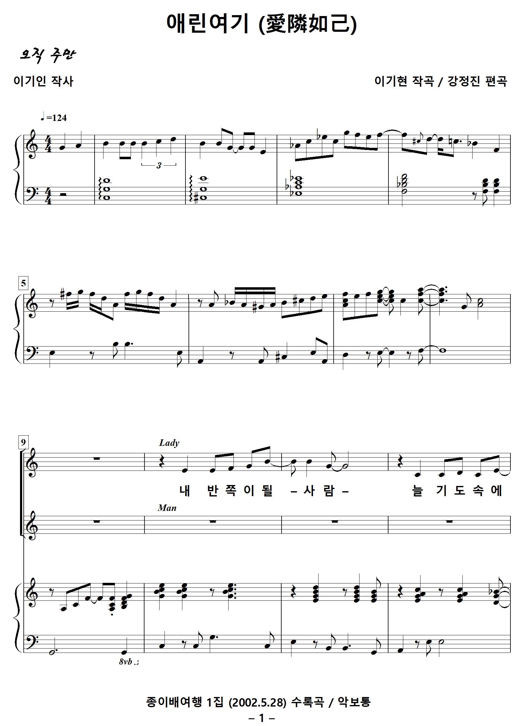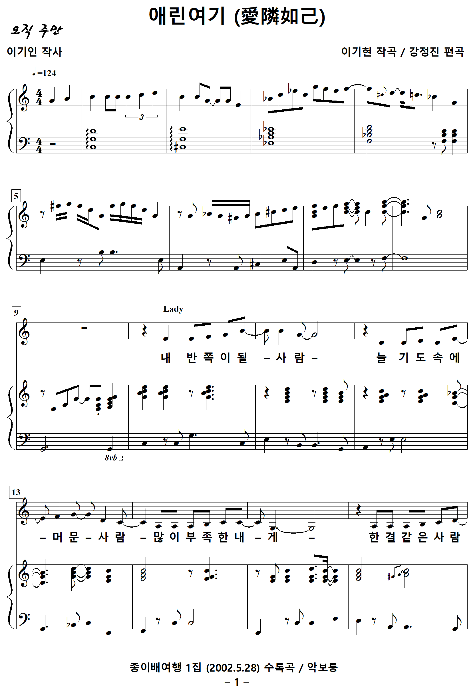 [찬양가사] 애린여기 / 愛隣如己 / 내반쪽이될사람 [이기인 작사, 이기현 작곡, 강정진 편곡]