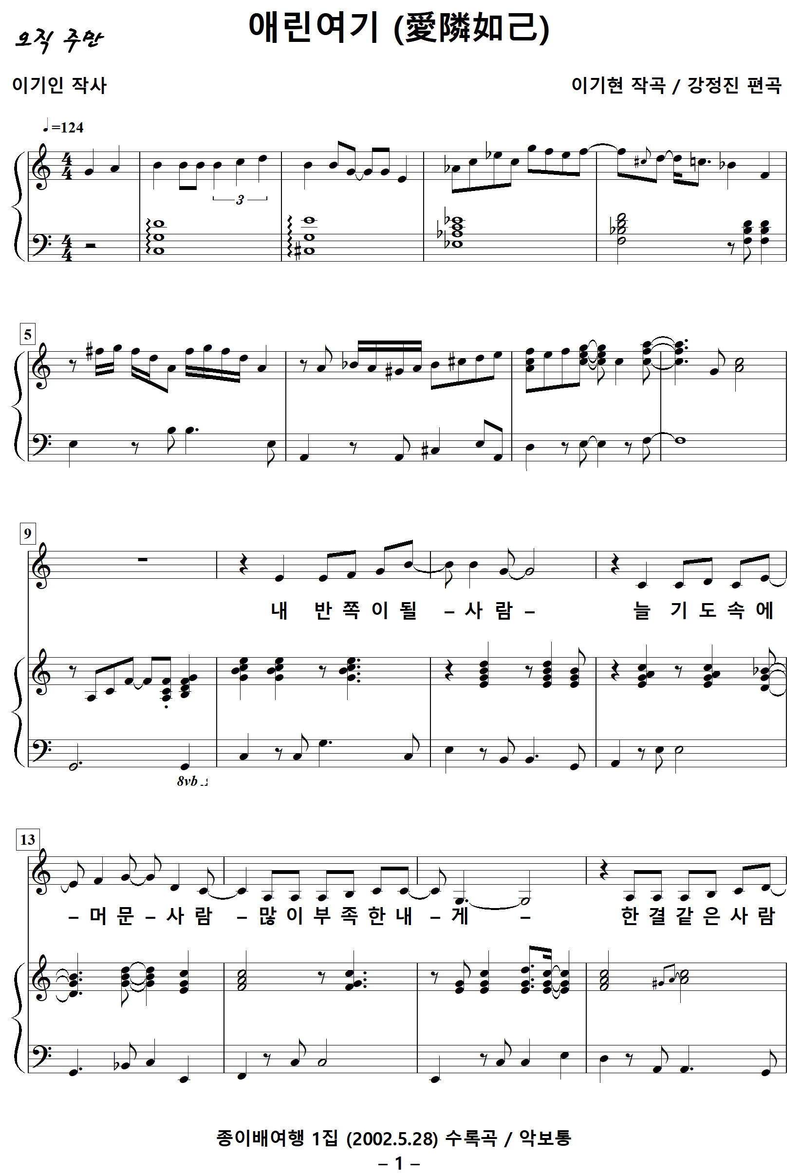 [찬양가사] 애린여기 / 愛隣如己 / 내반쪽이될사람 [이기인 작사, 이기현 작곡, 강정진 편곡]