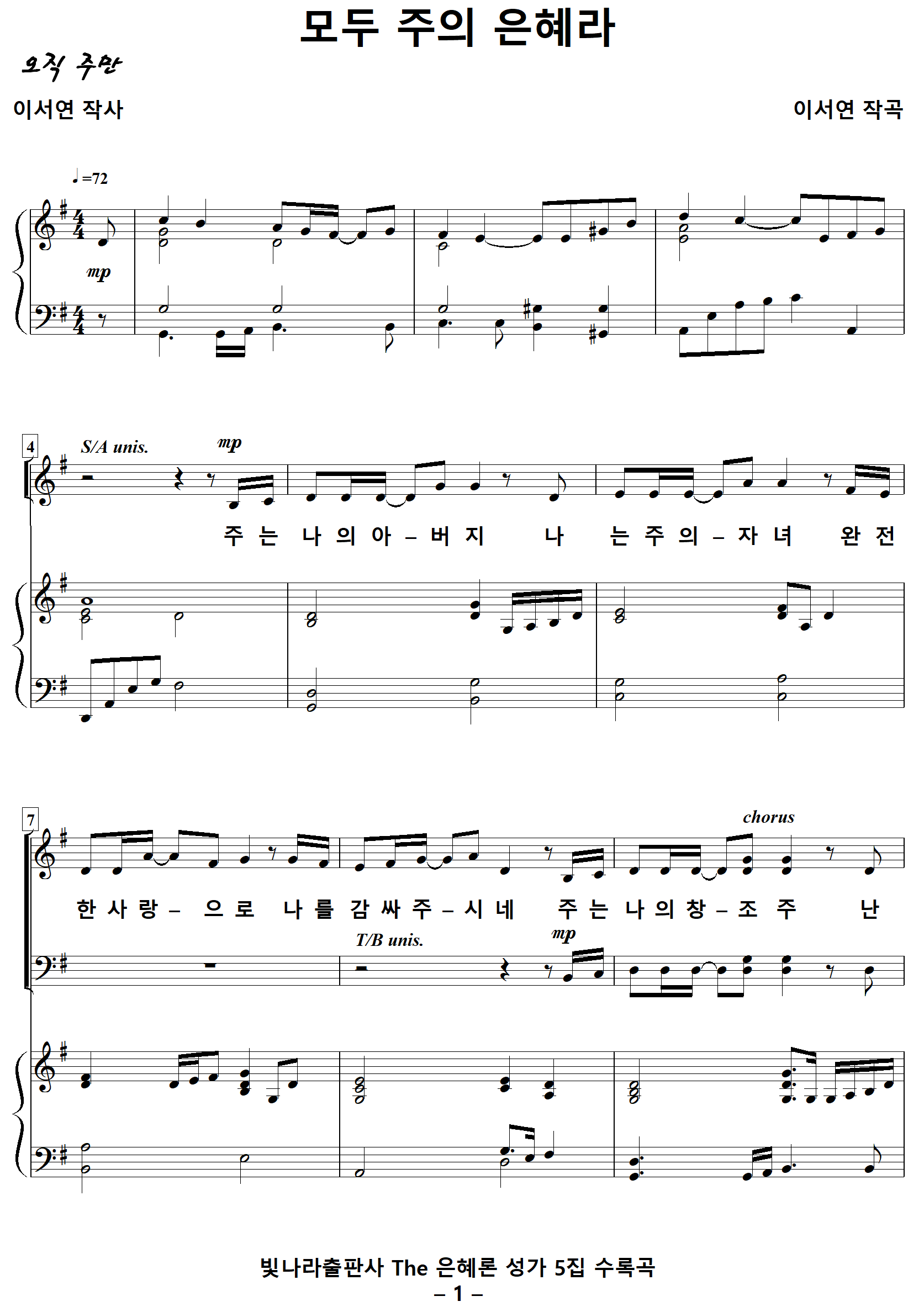 [성가악보] 모두주의은혜라 / 주는나의아버지