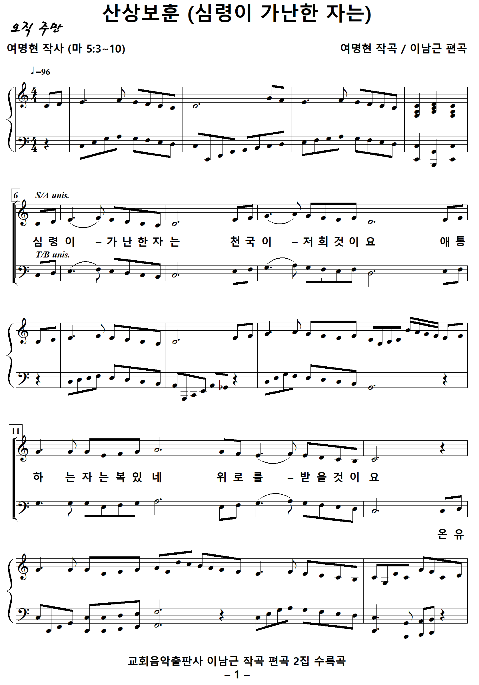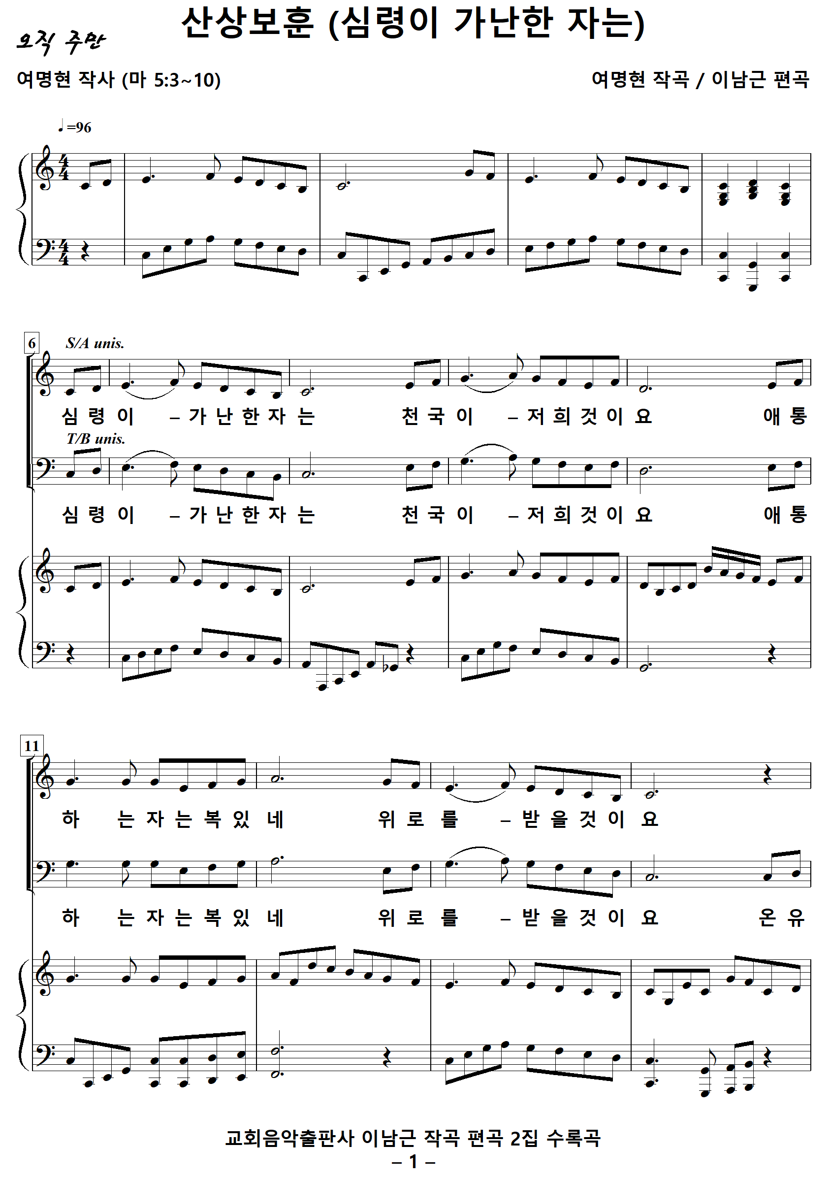 [성가악보] 산상보훈 / 심령이가난한자는 / 마음이가난한자는
