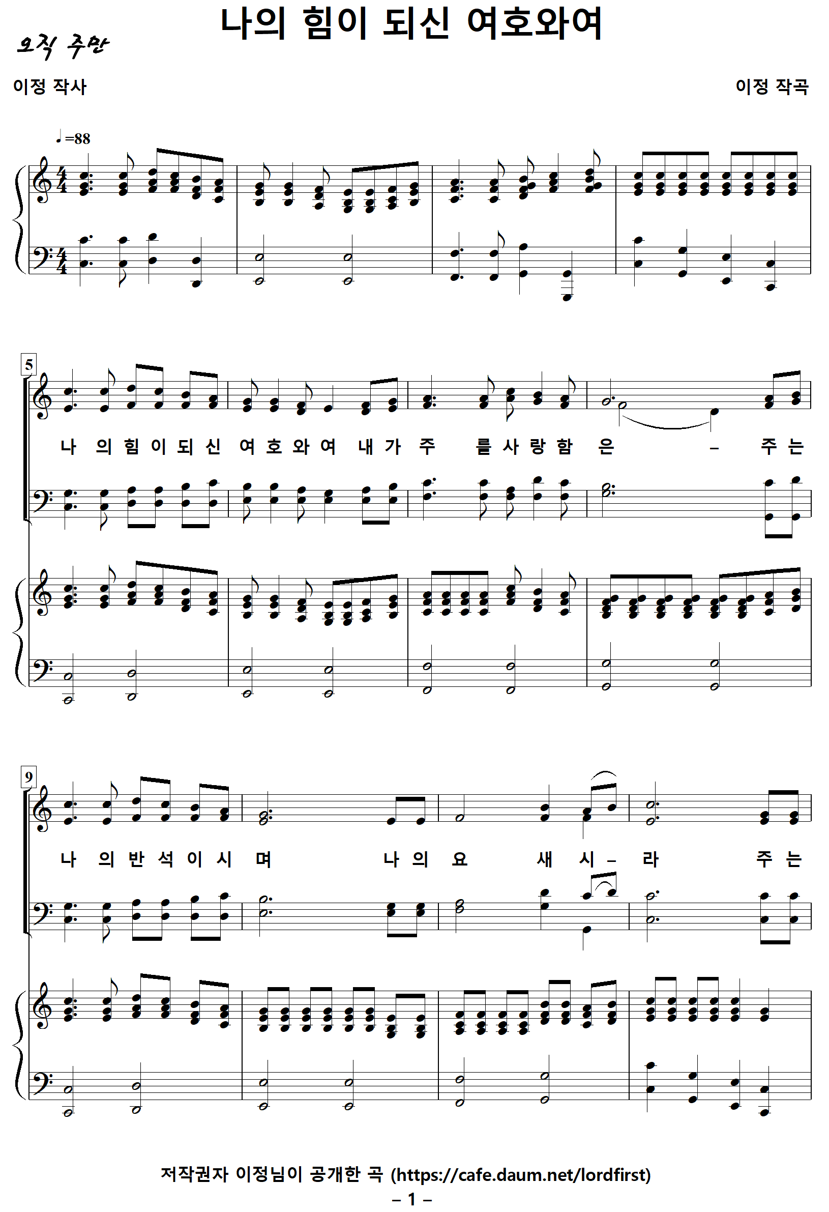 [성가악보] 나의힘이되신여호와여 [이정 작사, 이정 작곡]